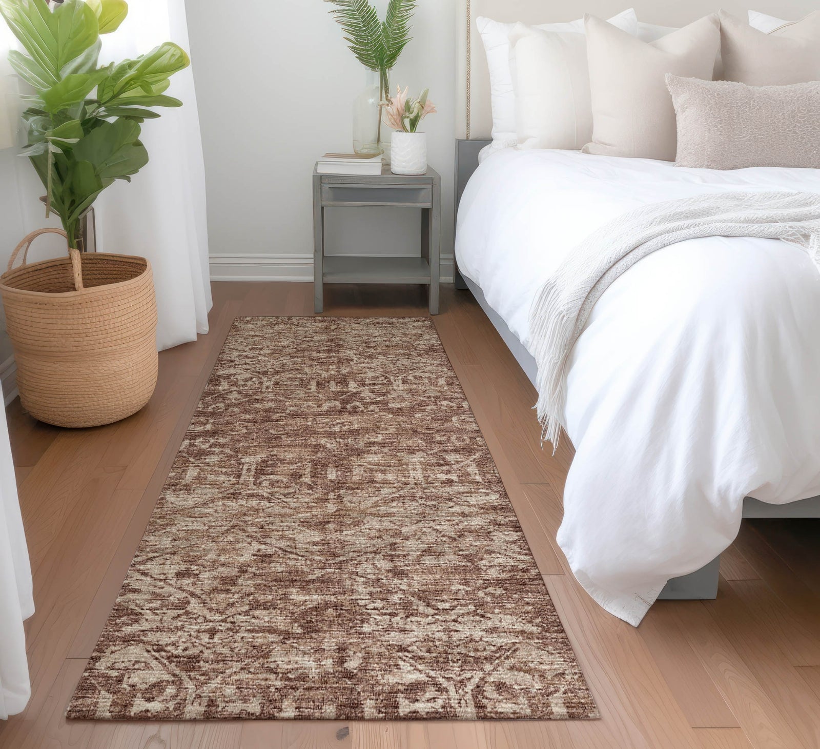 This rug combines the beauty of a vintage type motif with the elegance of a serpentine scroll pattern in a traditional design. Suitable for indoor settings and covered outdoor spaces, it features a soft, thick, and plush microfiber pile that enhances comfort. Family and pet-friendly, its premium machine washable quality offers unparalleled convenience.