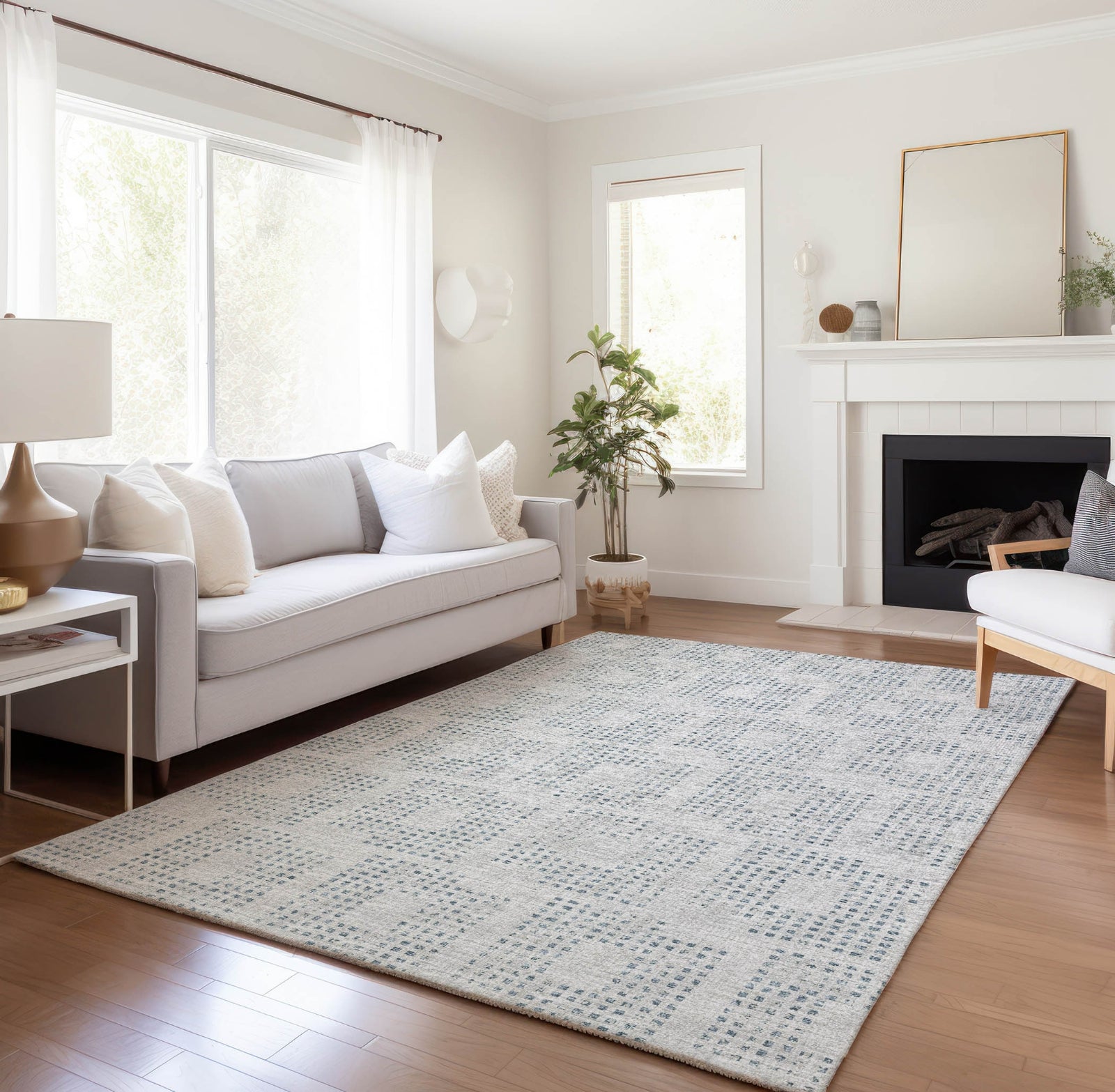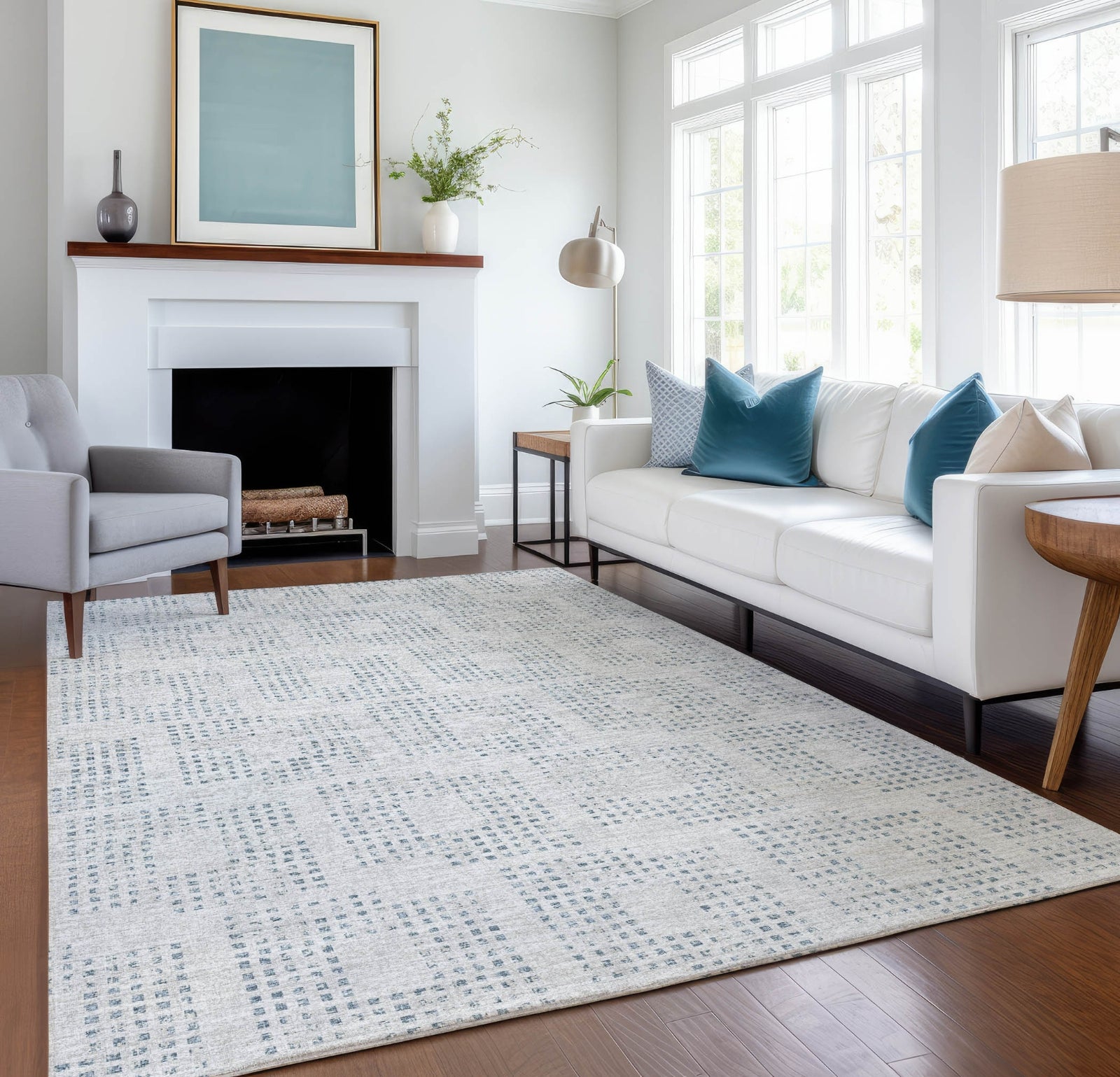 Piper Looms Mayfield Squares AMF33 Silver Machine Washable Area Rug