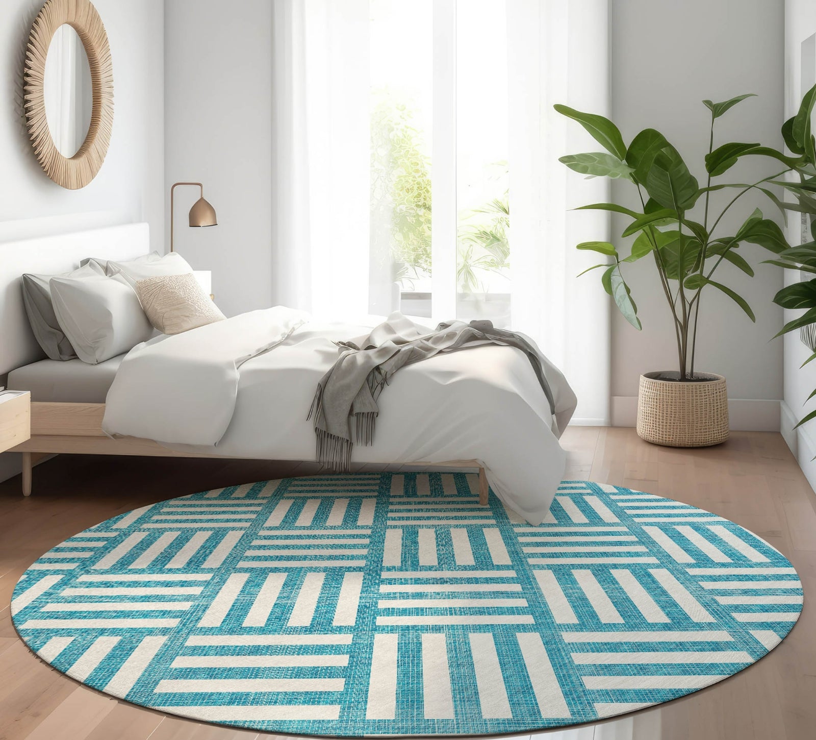 Piper Looms Mayfield Squares AMF620 Teal Machine Washable Area Rug