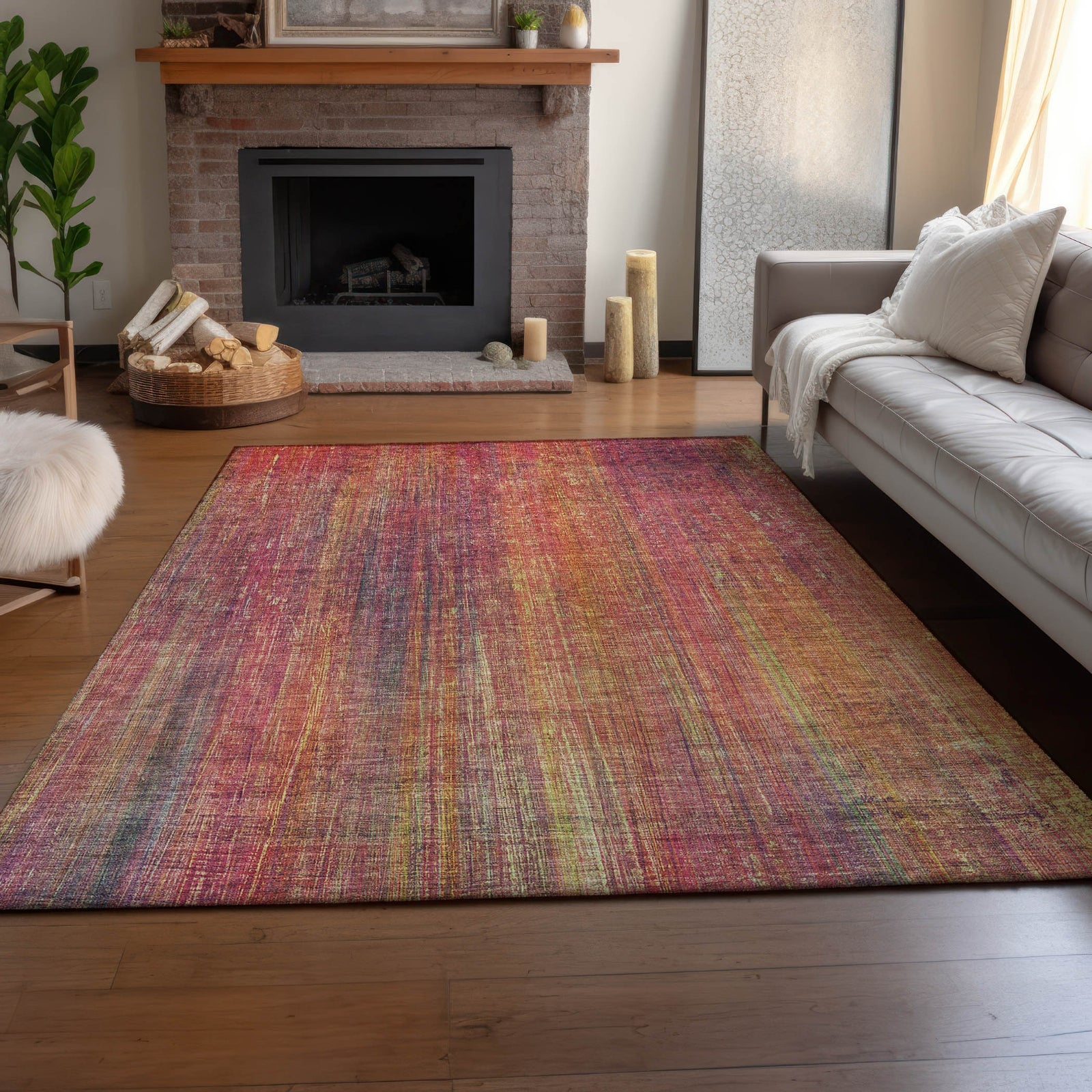 This rug features a faux texture weave that creates the look of vertical paint strokes in vibrant hues, providing a transitional style with a bold striped pattern. The design introduces a lively and artistic touch, fitting seamlessly into any room with its contemporary charm. Enjoy the plush, thick microfiber pile and UV stabilization for durability in indoor and covered outdoor areas. Additionally, it is premium machine washable, ideal for family and pet-friendly environments.