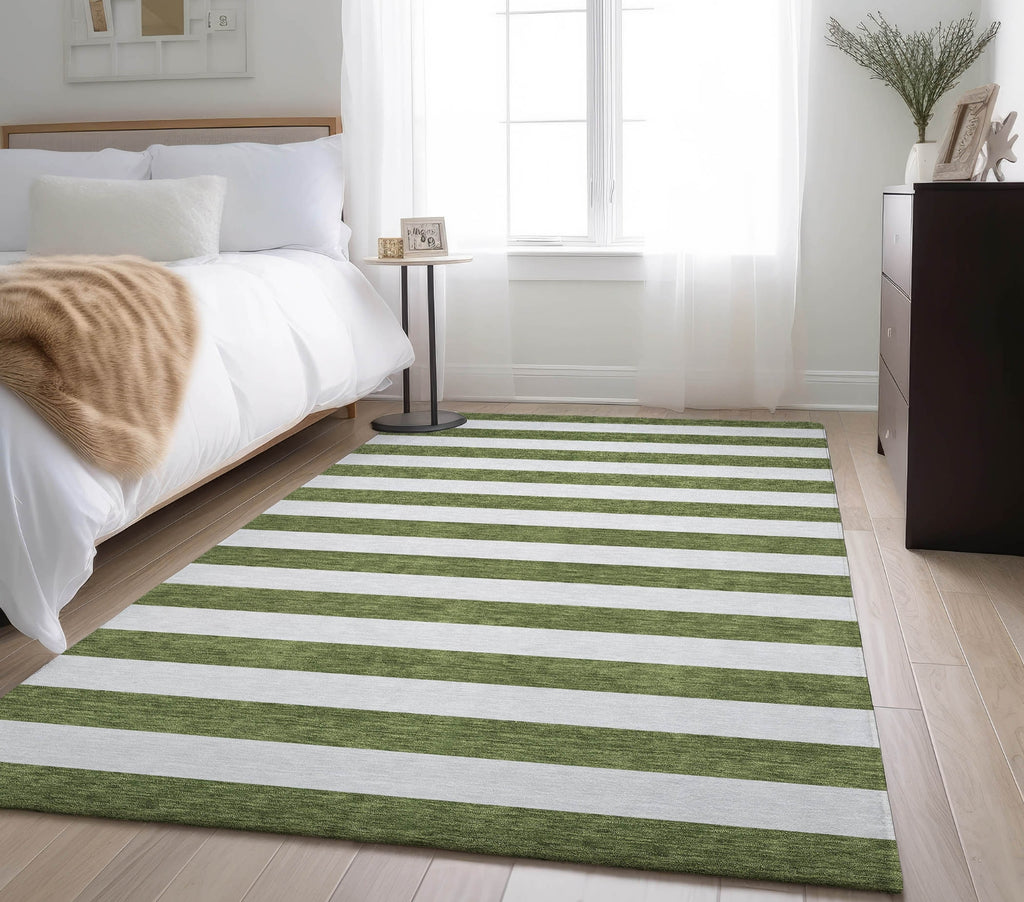 Piper Looms Mayfield Stripes AMF528 Olive Machine Washable Area Rug