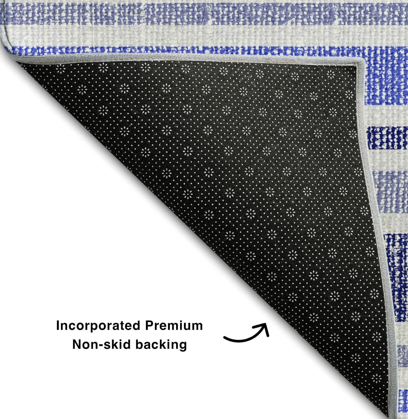 - Each rug has a non-skid backing. An additional rug pad may be used for extra comfort and stability.