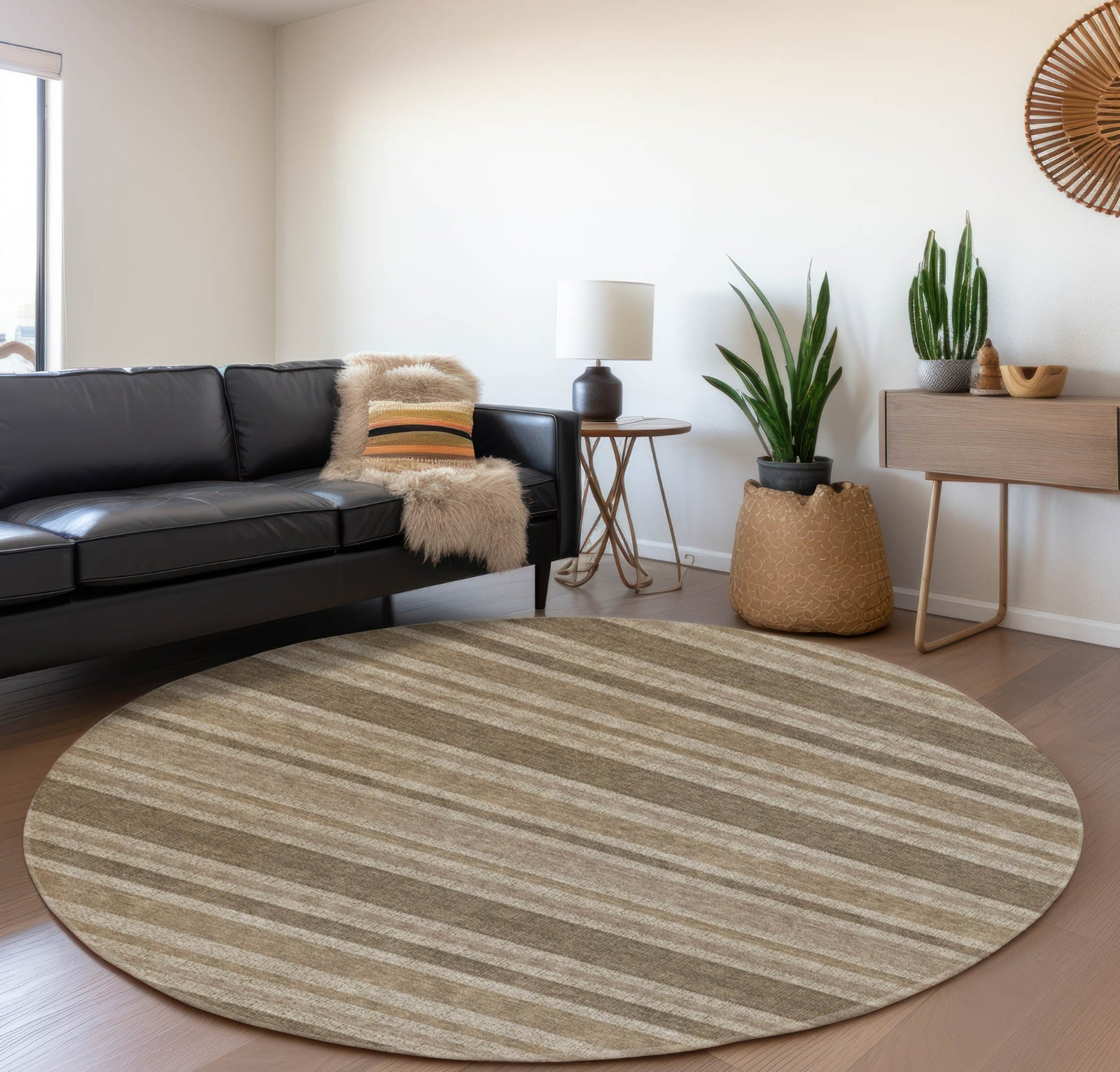 These eye-catching stripes in complementing colors add a burst of energy to your room, thanks to their transitional style and bold pattern. The vivid stripe design brings a modern edge to your decor, while the plush, thick microfiber pile offers luxurious comfort. UV stabilized for indoor and covered outdoor use, it is also easy to care for with premium machine washability. Family and pet-friendly, it combines striking aesthetics with functional benefits.