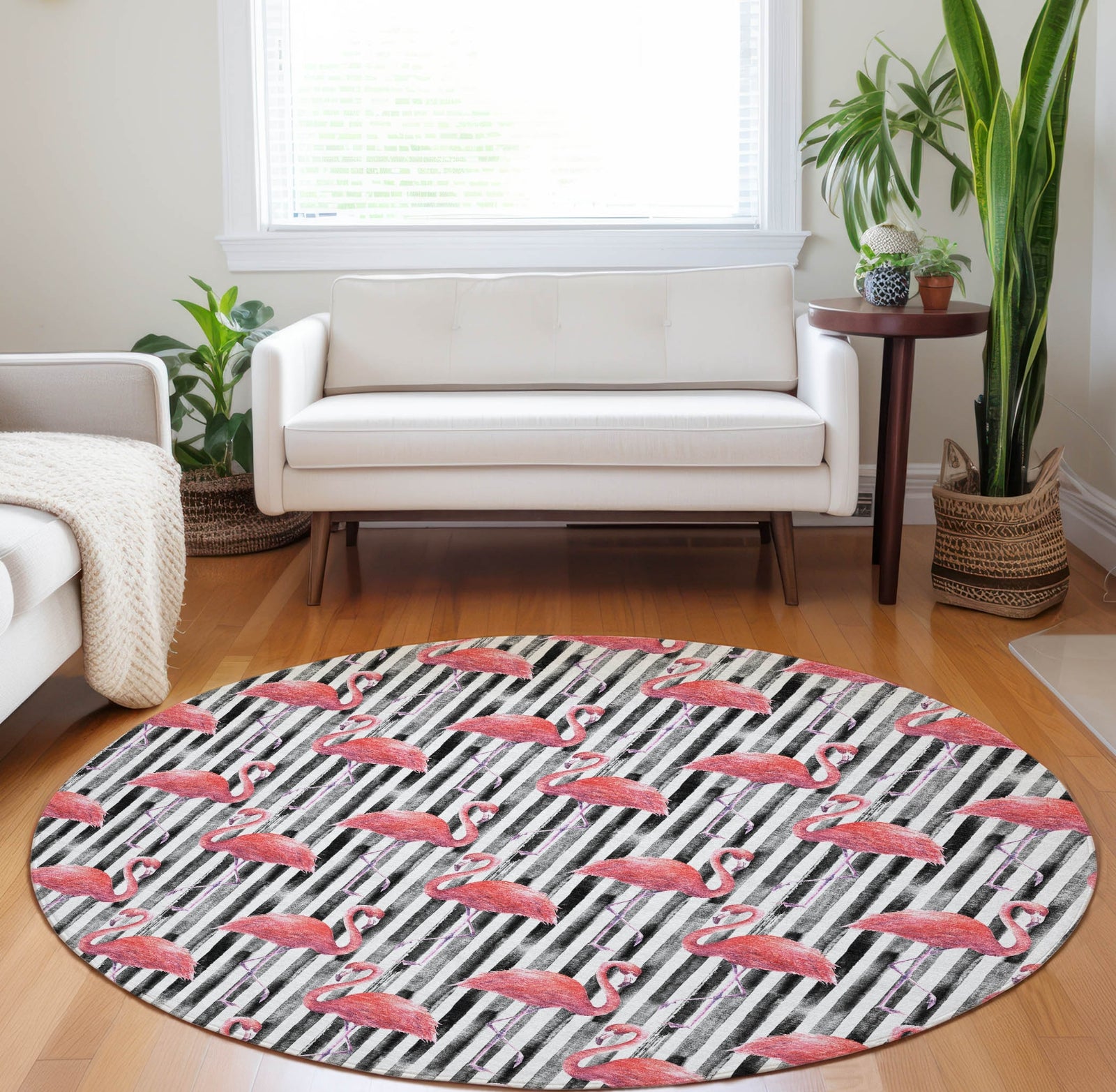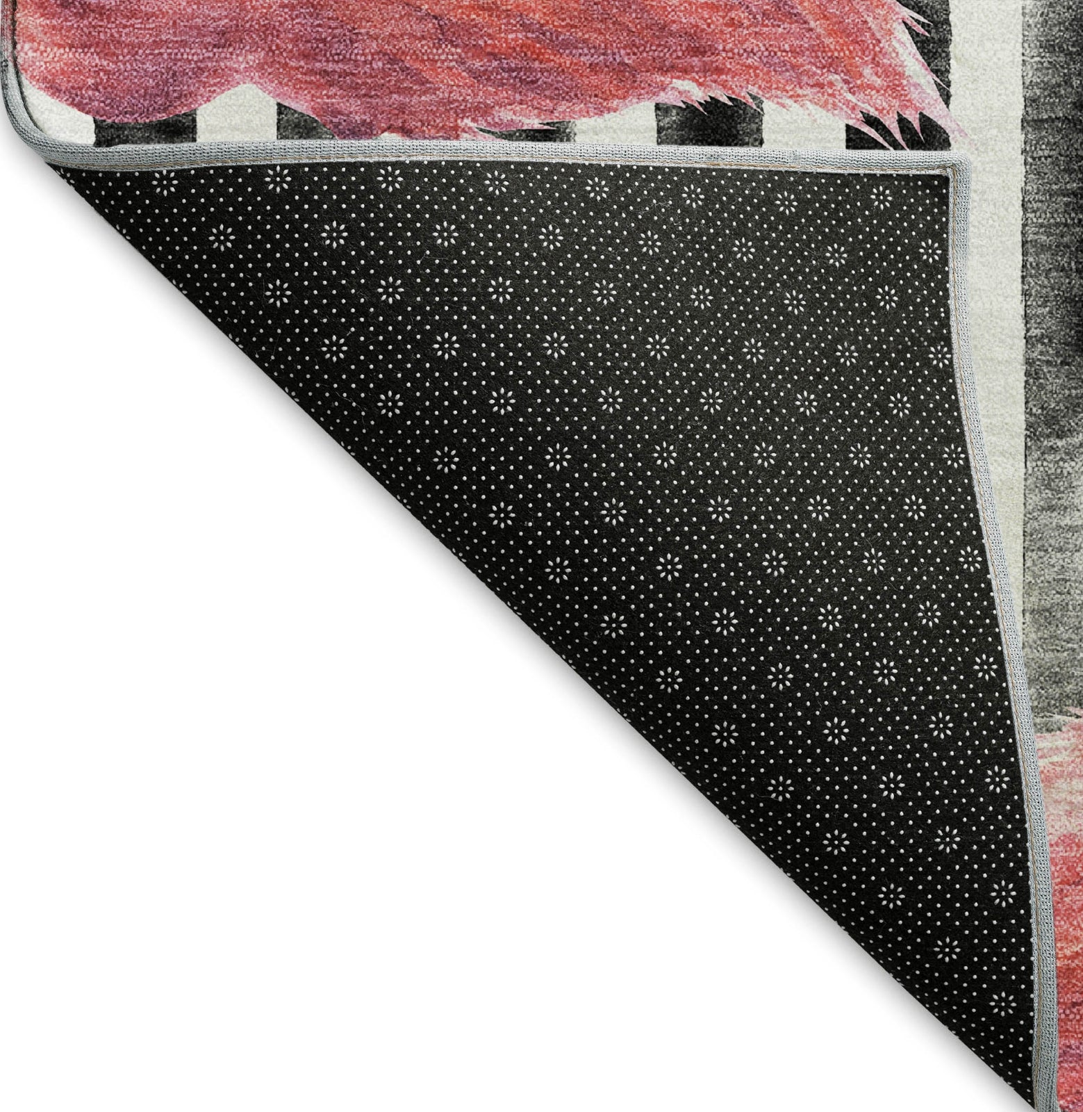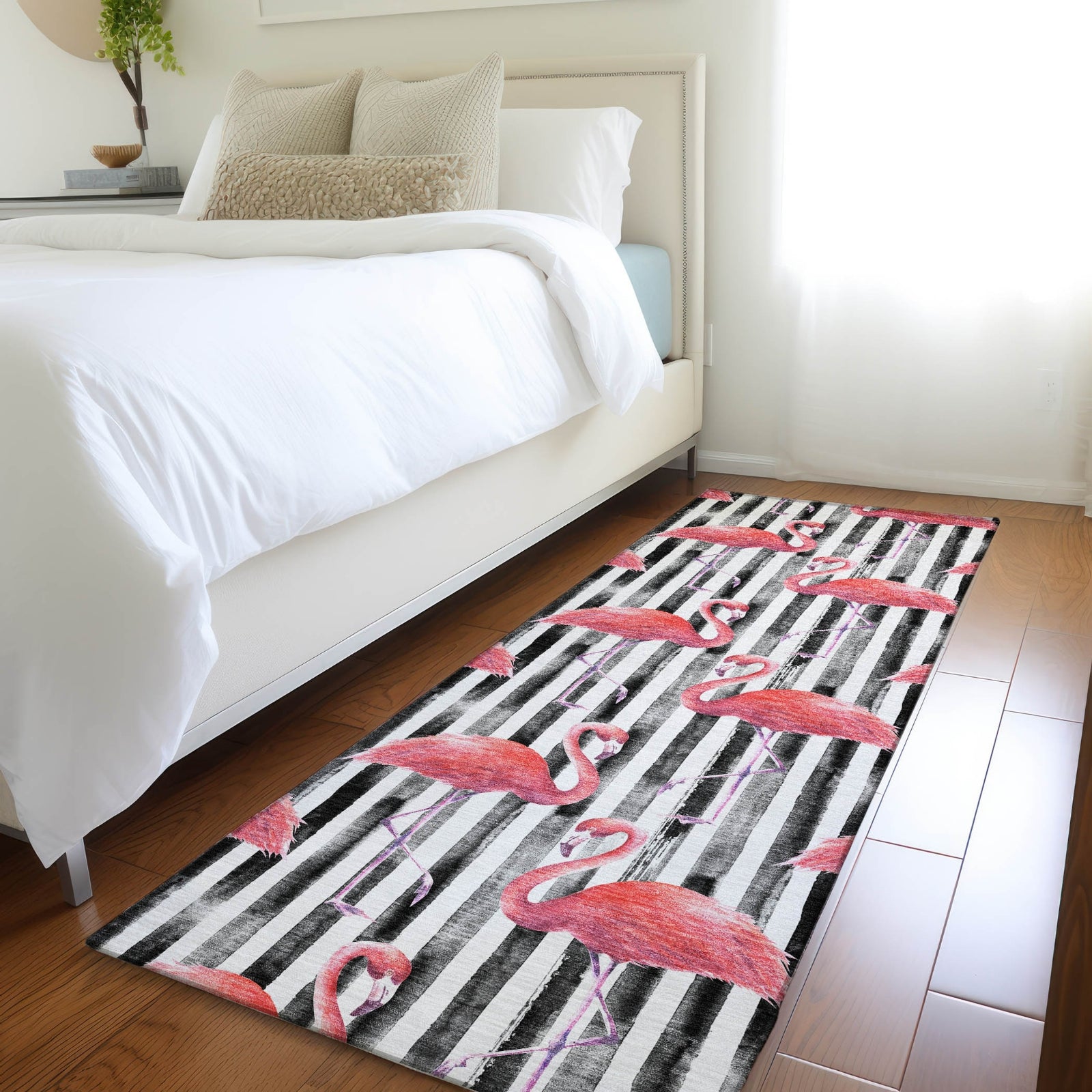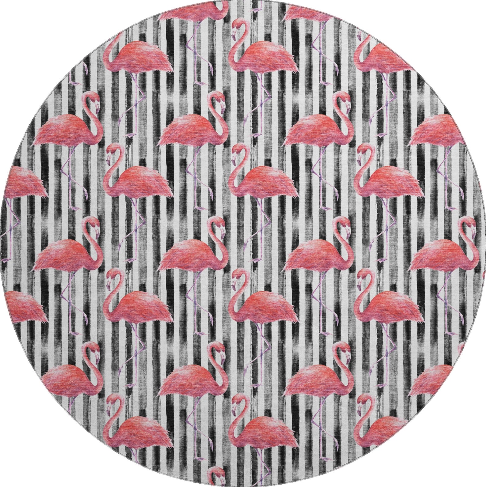 Piper Looms Mayfield Stripes and Flamingos AMF204 Pink Machine Washable Area Rug
