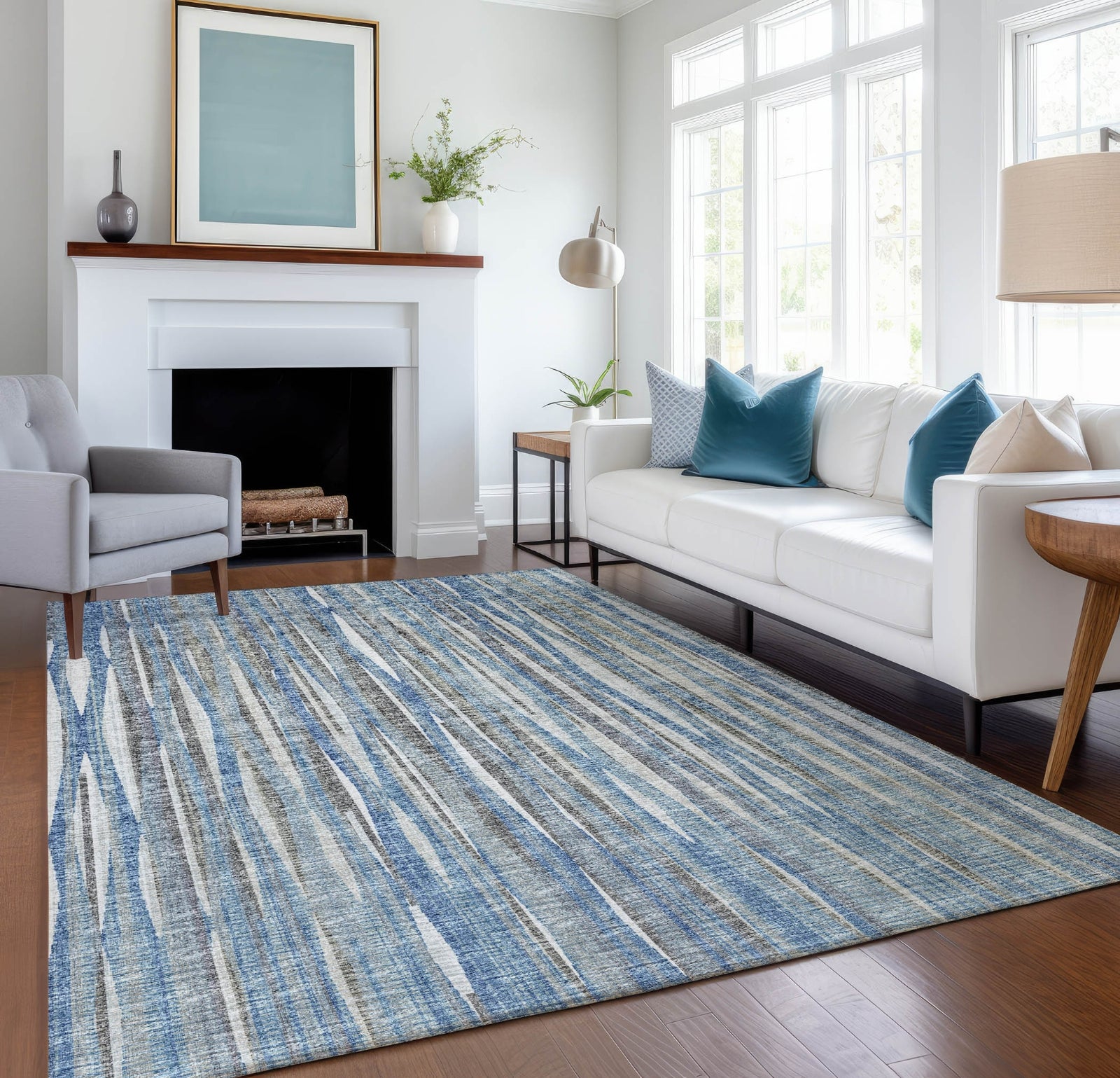 Piper Looms Mayfield Textured Stripes AMF31 Blue Machine Washable Area Rug
