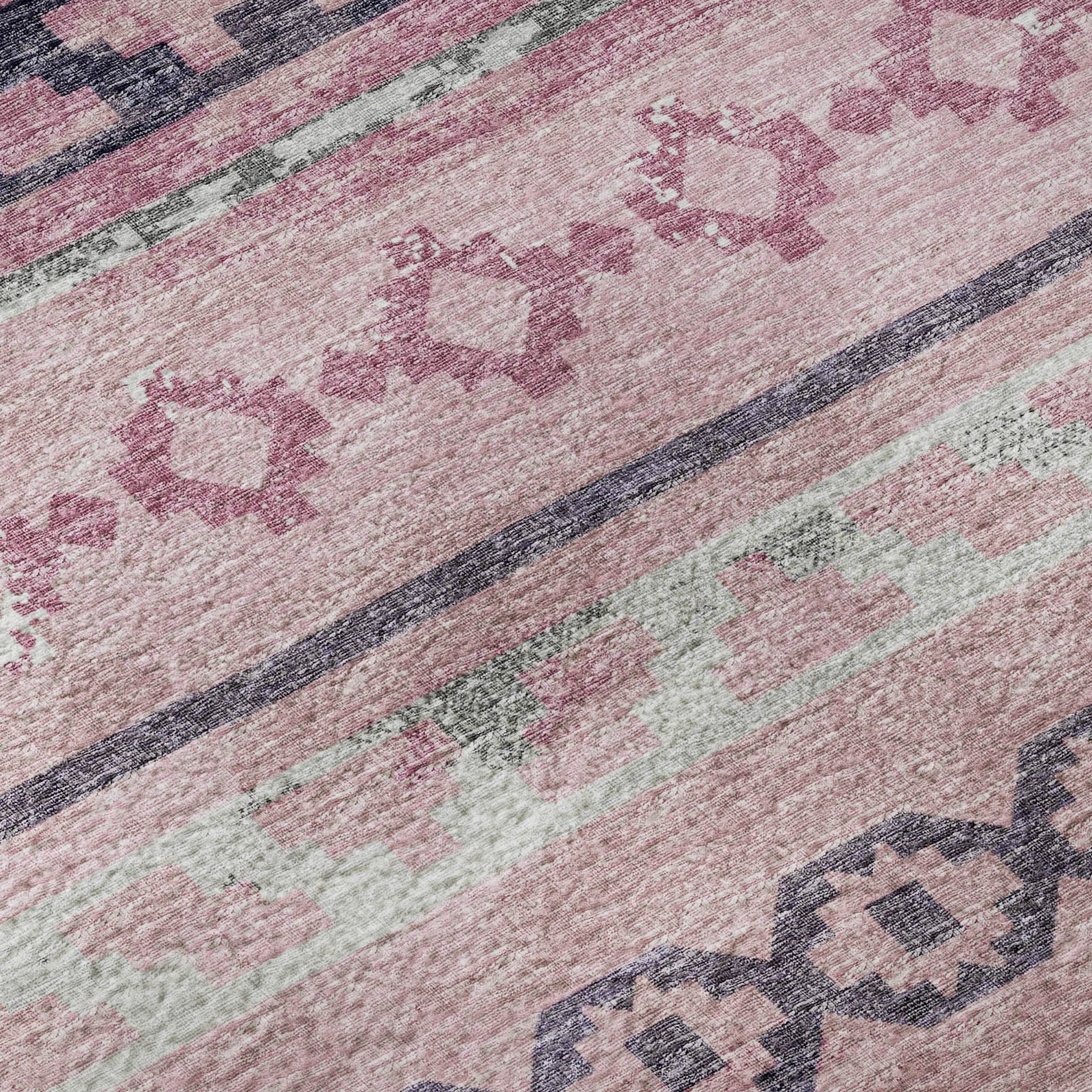 Piper Looms Mayfield Tribal Diamond AMF116 Pink Machine Washable Area Rug