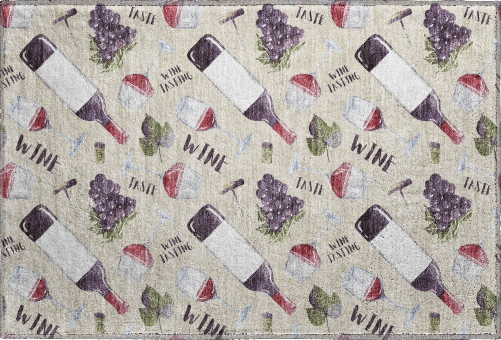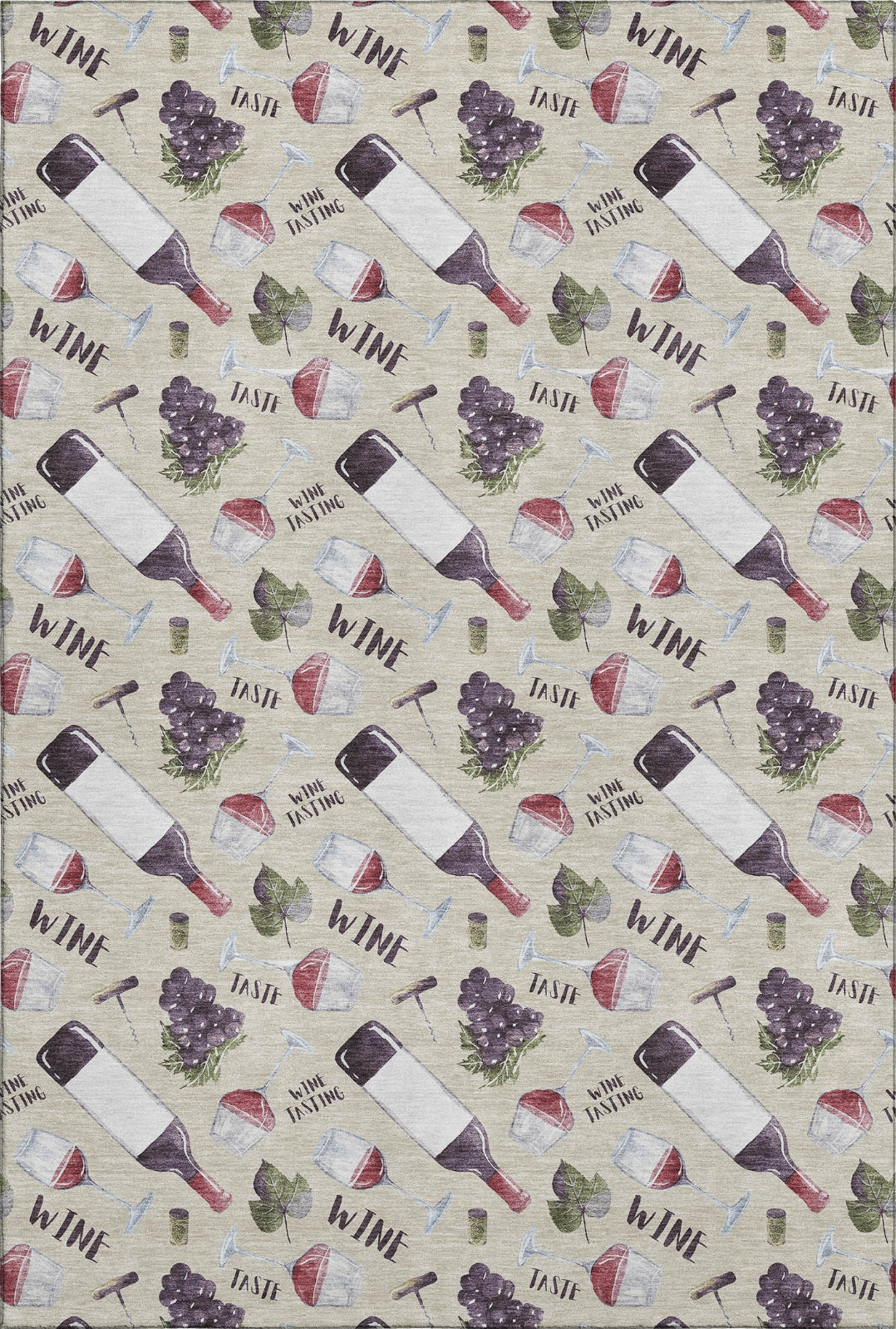 Piper Looms Mayfield Wine: Grapes AMF169 Ivory Machine Washable Area Rug