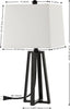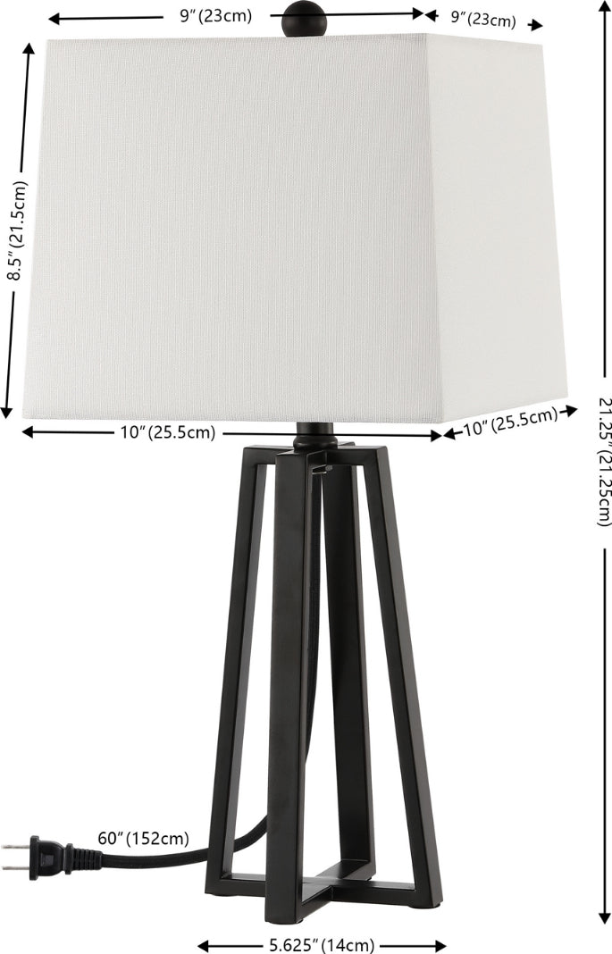 Lend a chic and airy update to your tabletop with our Acosta table lamp. The refined and airy profile of the lamp makes an impact with its sleek geometric presence. The angular lines of the base intersect to lend a chic and airy appeal to our table lamp. Its black metallic base creates a perfect contrast with a white trapezoid shade to serve as a sleek and welcoming addition to any room. Our modern lamp diffuses a pleasant glow to light up your nightstand, console, or end table in style.