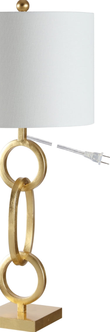 This Alaia Table Lamp is a glamorous reinterpretation of modern metal art, making it a must have in any chic interior. Alaia's open trio of gold finished chains abounds with artistic negative space, giving any room a flowing sense of motion. Designers love using Alaia in a trinity on console tables.