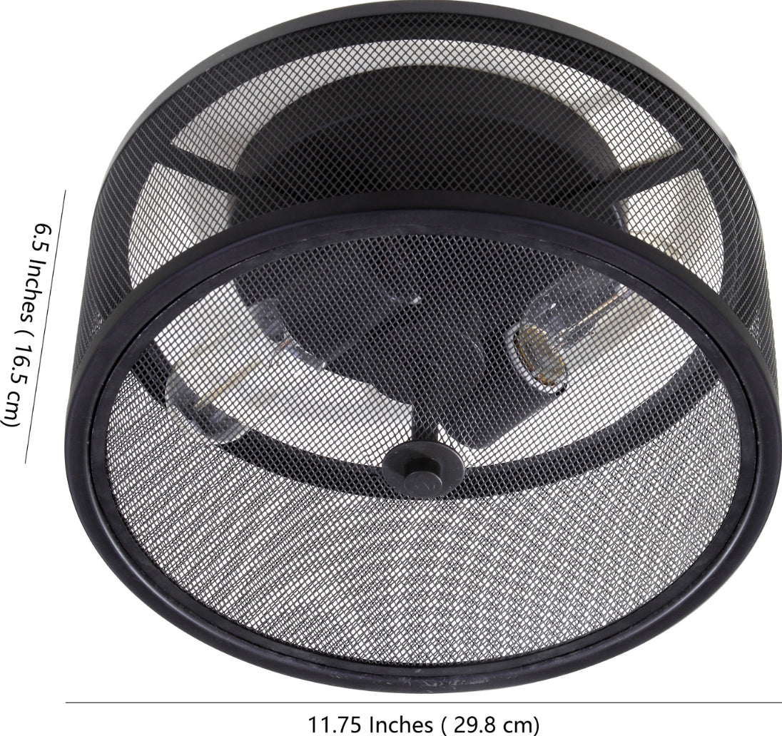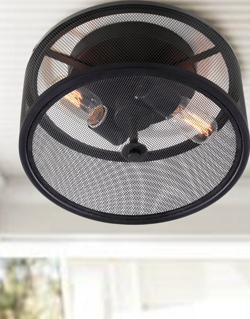 Bring industrial and contemporary flair to any hallway, living room, or kitchen with this modern flush mount ceiling light. Crafted with a bold black frame, its mesh metal construction reveals the glow of two industrial style bulbs.