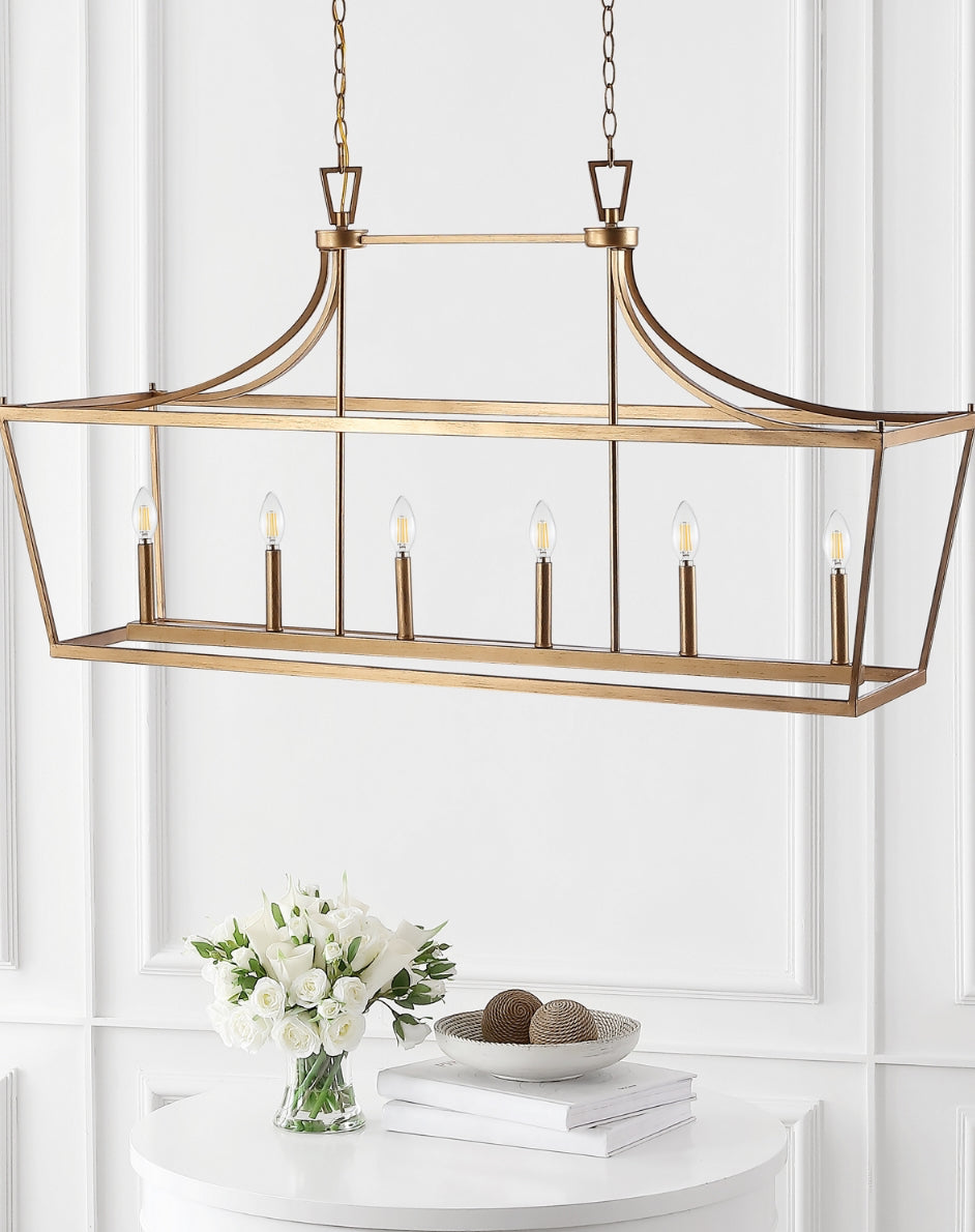 Transform any dining room with the bold, contemporary style of this expansive 6 light pendant. An homage to the art of fine metal craftsmanship, its modern minimalist lines and chic curves are highlighted with a warm, luxurious gold finish.