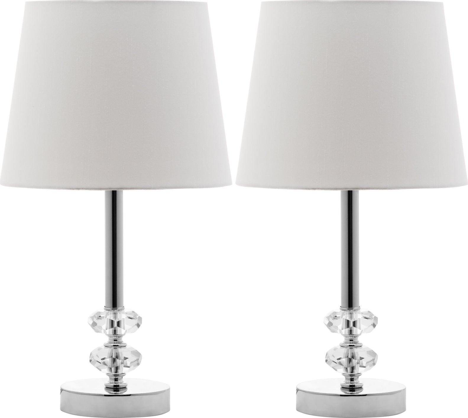 Delicate cut crystal assumes a chic new persona in the Ashford Crystal Orb Lamp with contemporary white Geneva shade. Sold in sets of two, these sleek lined lamps are understated and sophisticated with a reverence for traditional crystal artistry.