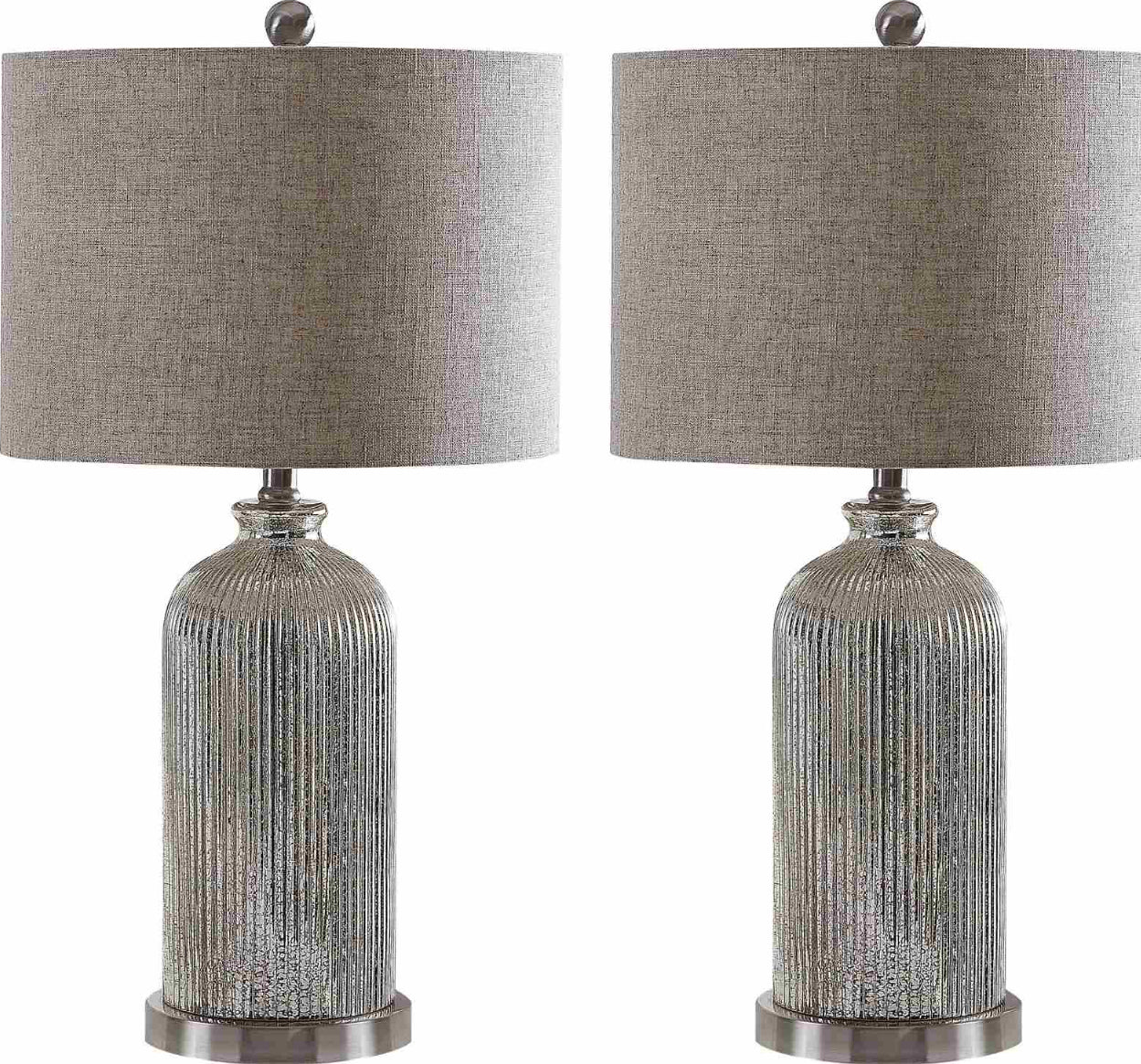 Dramatic and bold, this stylish contemporary table lamp brings rich texture to any living room. Expertly crafted with sophisticated mercury glass, designers love its luxurious materiality. Its neutral, complementary beige shade blends with any decor. Sold in sets of two.