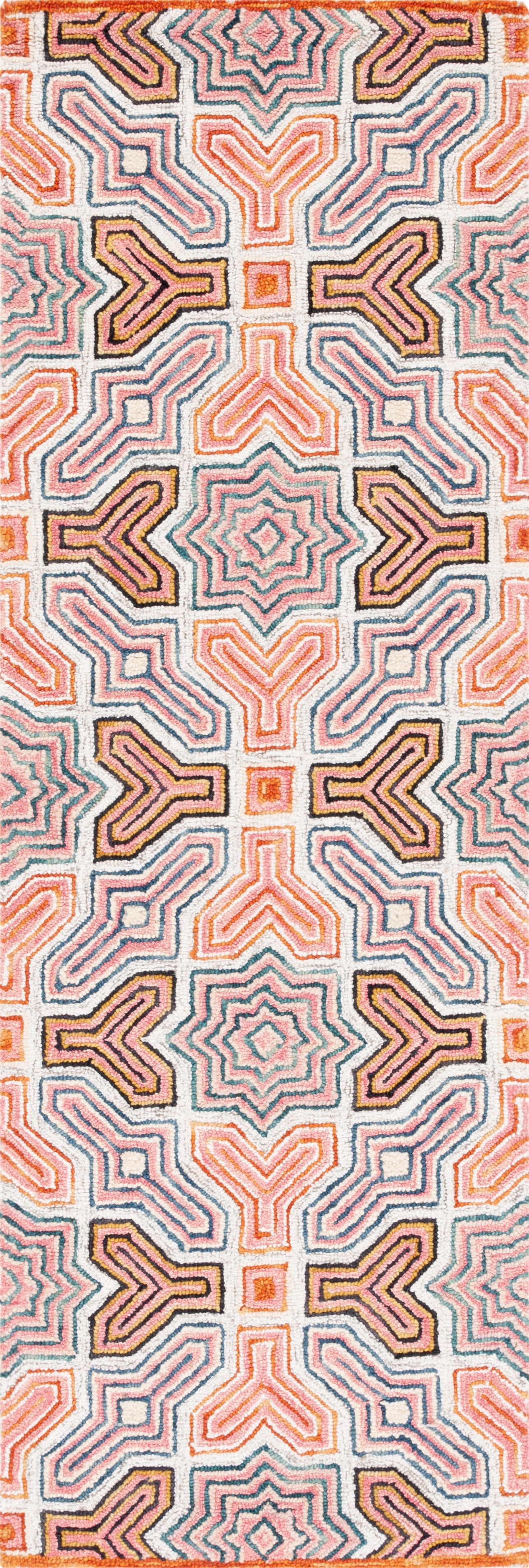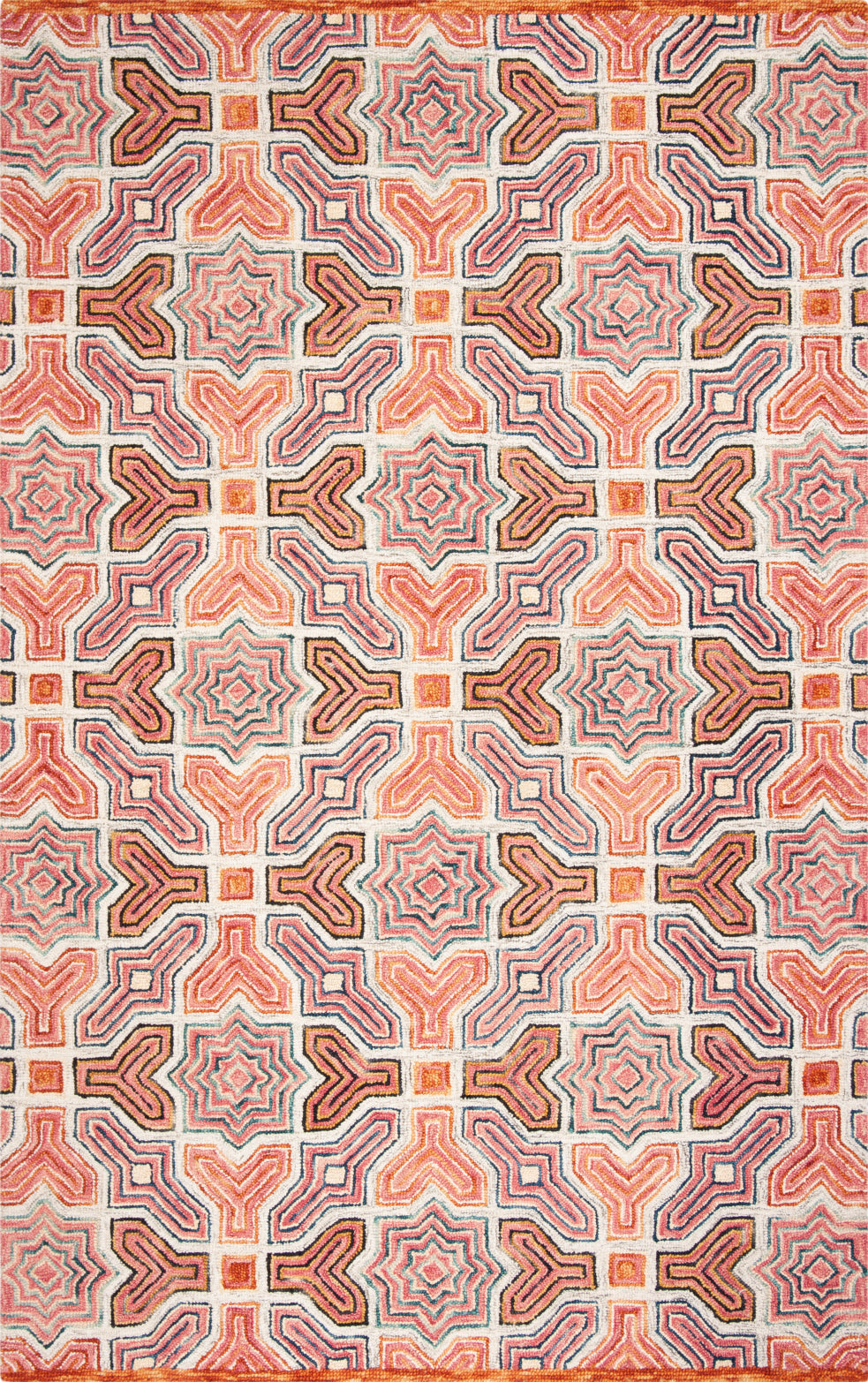 Transform your space with a touch of Bohemian flair using this exquisite hand-tufted wool area rug. Crafted by artisans in India, this 2' X 3' accent rug boasts a plush pile height of 3/8'' for a luxurious underfoot feel. The vivacious pink and orange hues meld to create an eye-catching geometric pattern that promises to elevate the aesthetic of any room. The intricate design features a harmonious balance of shapes and lines, offering a unique charm that is both timeless and modern. Ideal for adding a splash of color and sophistication, this woolen rug is not only a statement piece but also a testament to traditional craftsmanship blended with contemporary style. Whether you're looking to accent your living space or add warmth to your bedroom, this rug is sure to captivate and enchant.