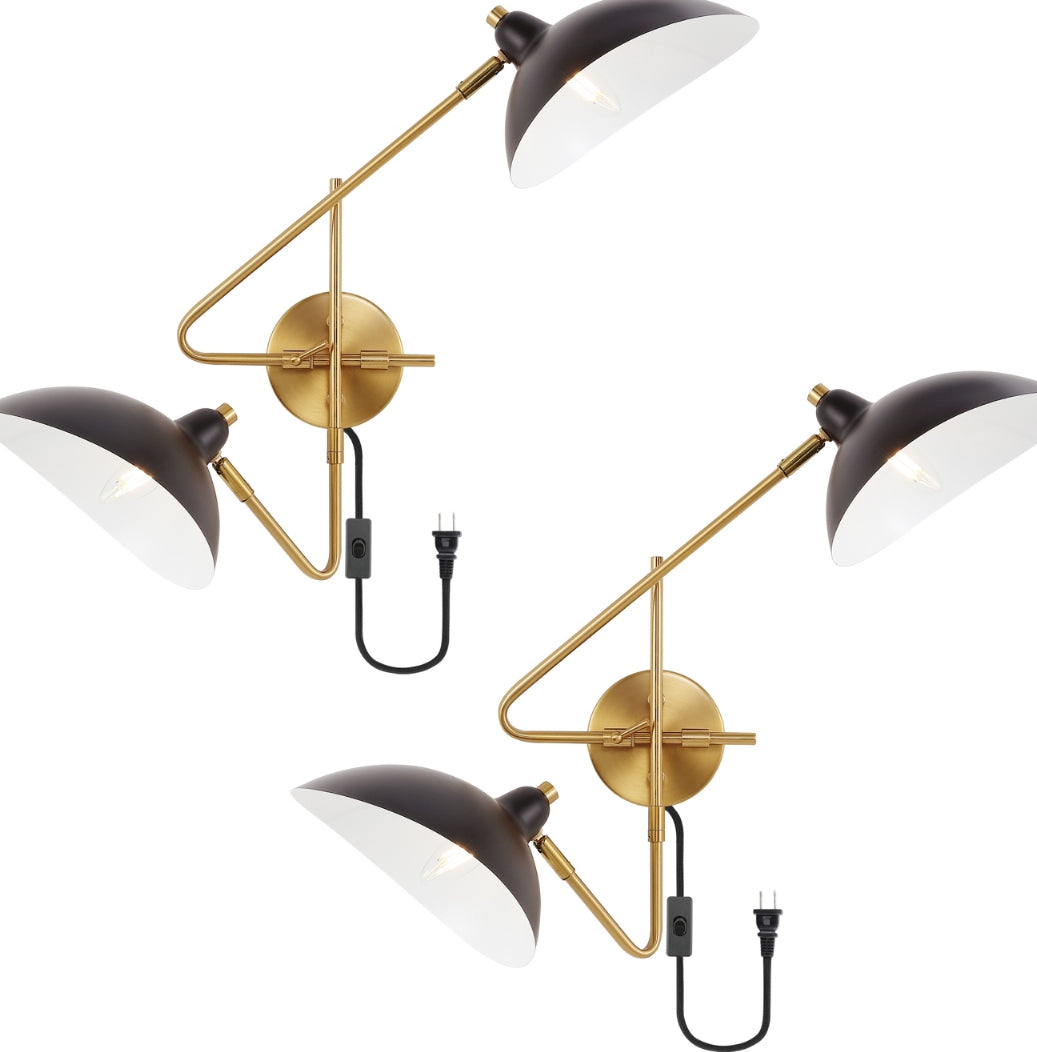 Embrace the charming style and elevated functionality of our Aspera wall sconce. Inspired by mid-century design, our twin lamp remains the perfect blend of form and function. It features two angular arms that beautifully intersect to make an eye-catching statement. Each streamlined dome shade can easily swivel and tilt to direct light to your desired area. It can face upwards to provide ambient light or downwards to provide focused task light. Being a sculptural lamp with multiple lighting compositions, our wall sconces are perfect for styling your bedside, console, sectional, or your favorite armchair.