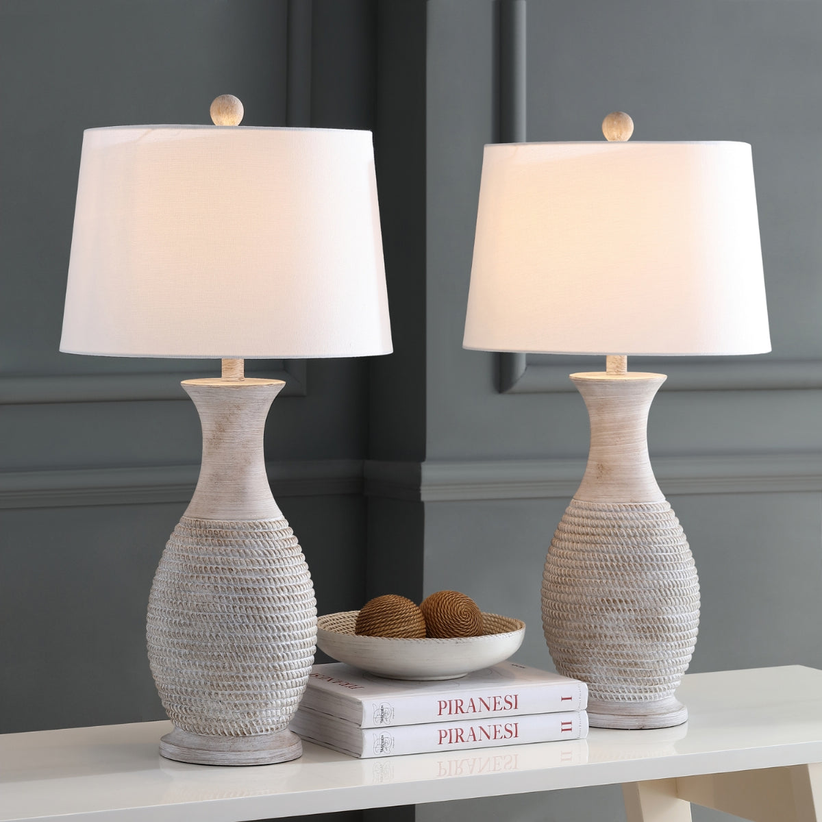 Invite soothing, warm style into the living room with this contemporary table lamp. Designed with flowing curves, its neutral grey textured hue blends into any interior with ease. Sold in sets of two.