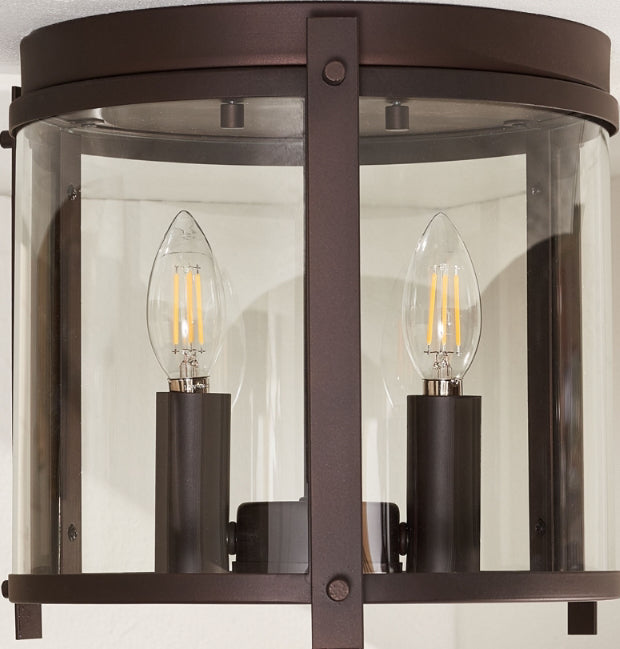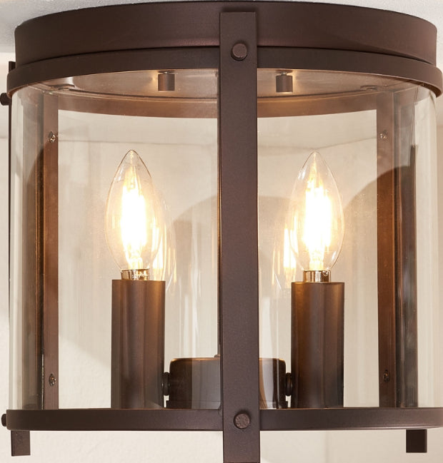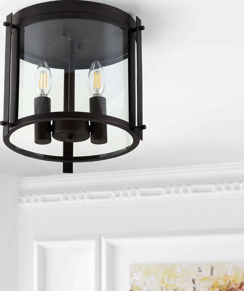 A new take on industrial chic, this Binsor Flush Mount awakens any contemporary decor. Binsor's oil-rubbed bronze finish highlights the subtle negative space of its iron frame, while candle-shaped bulbs cast a rich glow.