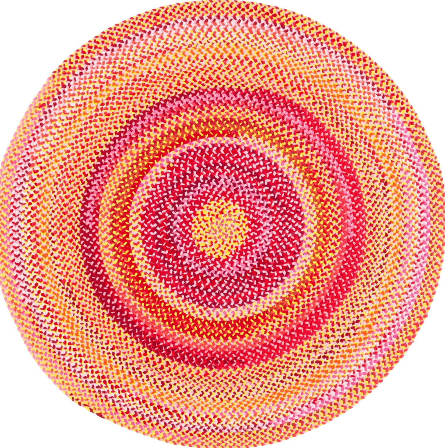 Introducing our vibrant 2'0''x3'0'' hand woven area rug, imported straight from the skilled artisans of China. Showcasing a unique and eye-catching accent shape, this exceptional piece is crafted entirely from pure cotton and boasts an impressive height of 1/4''. It features a mesmerizing blend of fiery red and orange hues that are certain to enrich any living space. What's more, its intricate braided style adds to its distinct personality and charm. Trust this luxury rug to make a dimensional statement in your home!