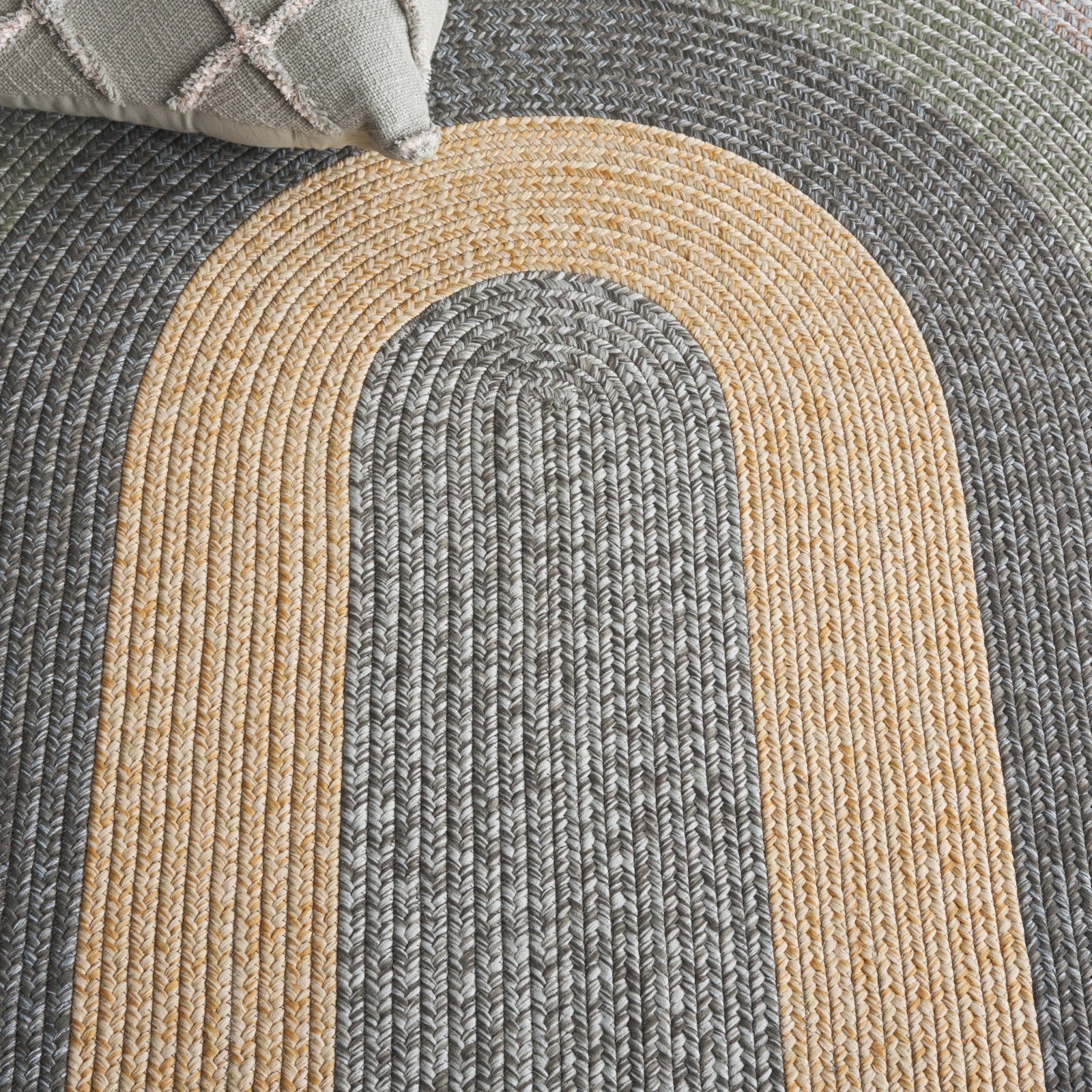 Enhance any space with this versatile 2-foot by 3-foot accent rug, beautifully designed in a harmonious blend of grey and green hues. Constructed using a hand-woven technique, this rug showcases a braided style that exudes both timeless charm and contemporary flair, making it an excellent addition to both indoor and outdoor settings. The polypropylene pile ensures durability and ease of maintenance, as the rug is washable, allowing for effortless care. Crafted with precision in China, the piece stands at a comfortable height of 1/4 inch, offering a subtle yet substantial feel underfoot. The visually engaging pattern promises to complement a variety of decors while also proving to be a practical choice for everyday living.