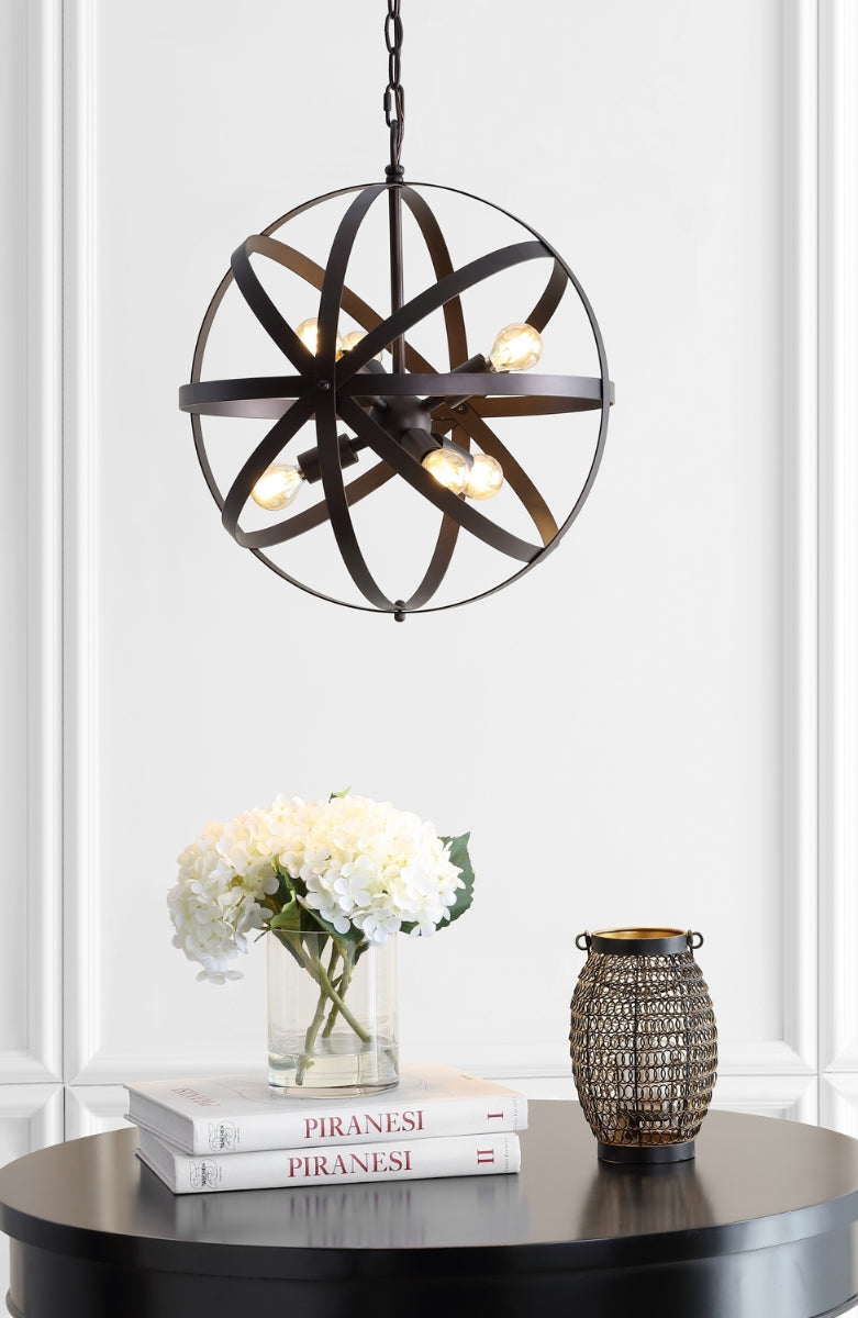 Designed to be functional art, this luxurious contemporary globe pendant adds layers of neo industrial style to the living room. A new classic, the finely crafted metal spheres that surround its chic sputnik style chandelier have a timeless iron finish.