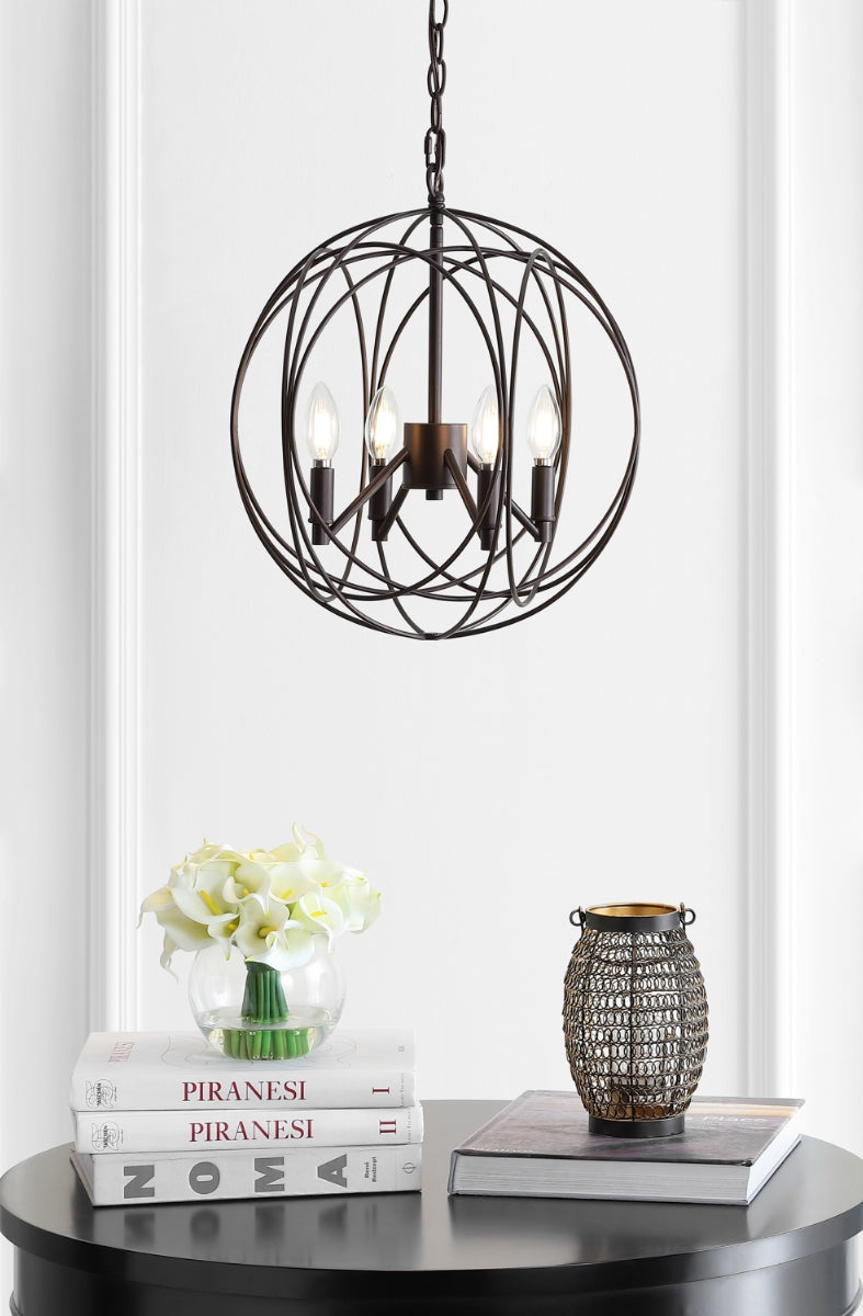 Elegant and sophisticated, this contemporary global pendant light adds instant modern romance to any room. Finely crafted with dark grey open metalwork, the gentle overlapping curves that surround its glowing bulbs make it a designer favorite.