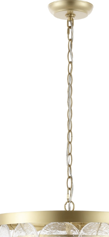 Brighten up your home with the eye-catching beauty and elegance of our Chrys chandelier. Featuring a layered and elegant profile, our chandelier makes a unique and elevated statement. Its circular glass discs beautifully overlap to create a sophisticated and eye-catching canopy. Each glass disc beautifully catches and refracts light to create an illusion of movement. Completed with gleaming brass accents, our chandelier adds a perfect touch of glam and interest to your home. It creates a warm and radiant glow to beautifully illuminate your entryway, dining, lounge, or bedroom.