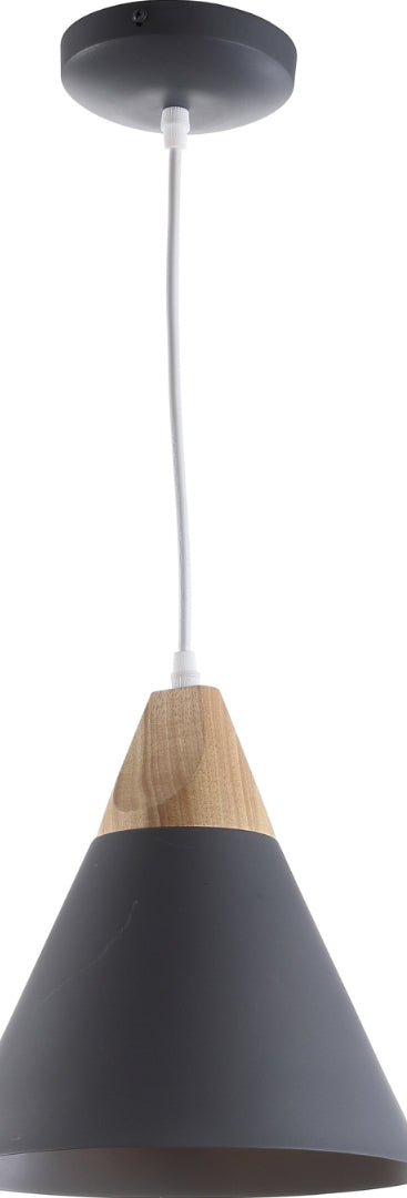 This minimalist pendant will illuminate any modern bedroom, living room, or kitchen. Its cool dark grey shade, paired with a light brown wooden finish, adds a clean contemporary finish to any decor.
