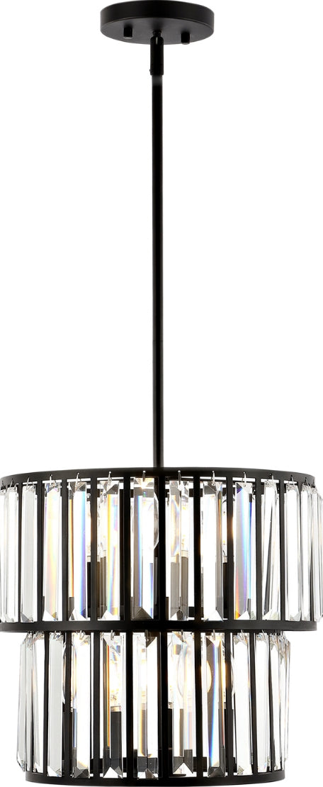Give your decor a burst of Art Deco decadence with this captivating Crissa Chandelier. Casting a cosmopolitan glow, Crissa's Gatsby gala glamour shimmers from its two tiers of fine crystal details perfectly framed by a black metal frame, creating a lavish look in any room.