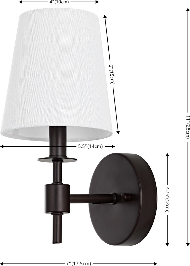 Lend a timeless upgrade to your decor with our stunning Dalany wall sconces. Elegant details and a beautifully streamlined design lend sophisticated elegance to our wall sconces. Its round back plate creates a subtle contrast with the stylized arm. Complete with sleek tapered shades, our walls scones impress with its stately charm. It is finished off with a gleaming black finish to add a perfect touch of polish to your home. Casting a soft and inviting glow, our wall sconces remain perfect for flanking a doorway, bedside, or sideboard in style.