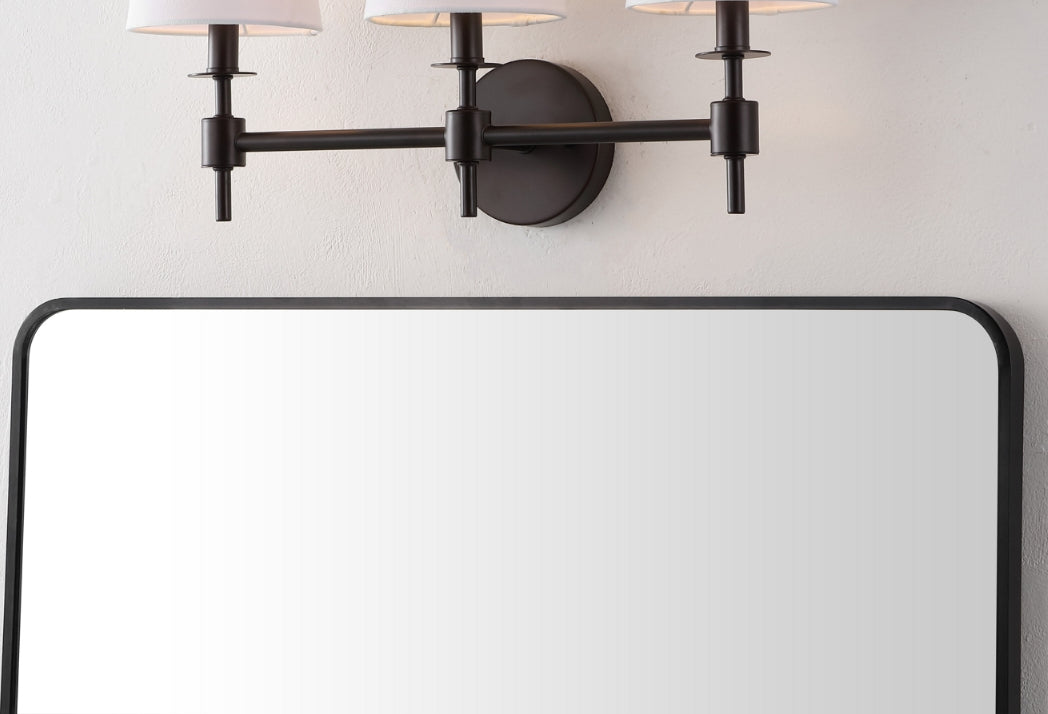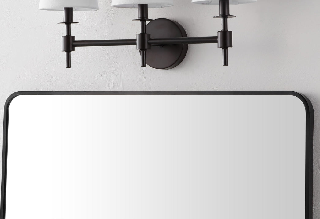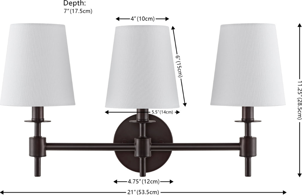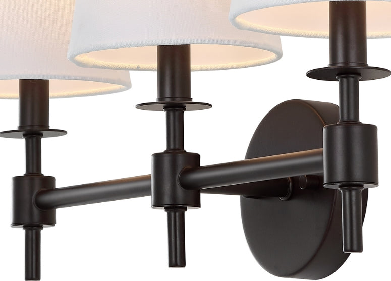 Add a dash of polish and elegance to your home with our Davielle wall sconce. Offering a sophisticated mix of modern and traditional aesthetics, our wall sconce elevates any room with its timeless charm. Its elegantly tapered white shades lend a classic and elegant note to the wall sconce. It is finished off with gleaming black hardware to bring luxe elegance to your home. Our three-light wall sconce filters a soft ambient glow to lend the perfect finishing touch to your lounge, bedroom, or powder bath.