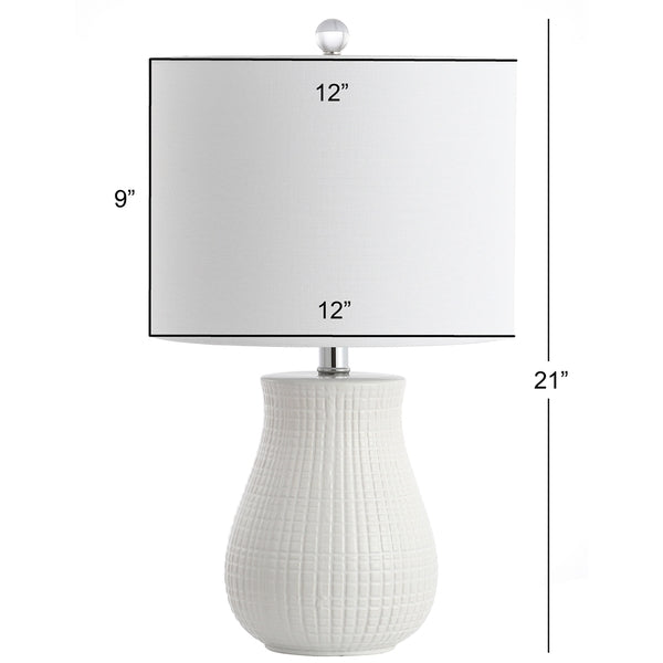 Add fresh contemporary style to the living room with this chic table lamp. Designed with ceramic, its elegantly textured pattern lends depth to its minimalist white hue and 100% cotton shade. Sold in sets of two.