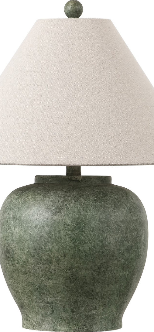 Introducing the Dylan Table Lamp, a harmonious blend of classic design and modern functionality. Adorned in an antique green finish, this lamp features a sturdy resin body that captures a touch of vintage charm, making it a perfect addition for those who appreciate the beauty of bygone eras infused into their living space.