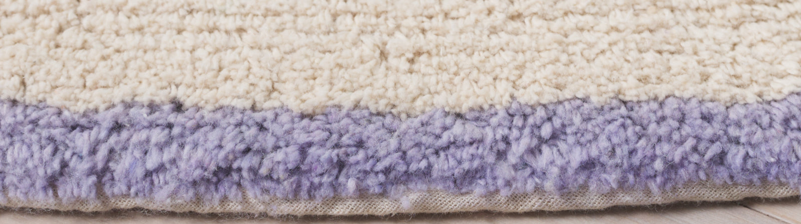 Introducing our magnificent 3' x 3' Round Ivory/Lilac Area Rug. This marvelously designed round rug, expertly hand-tufted in India, screams sophistication with its luxurious combination of delicate ivory and lilac hues. Made from 100% recycled cotton, this rug not only adds elegance to any space but also supports sustainable living. Its precise craftsmanship boasts a comfortable 3/8'' pile height- plush enough for your feet to sink into yet slim enough to prevent a tripping hazard. Whether you're looking to elevate your room's decor or add some warmth, this rug is an excellent choice. Choose our hand-crafted ivory/lilac round rug for a touch of Indian craftsmanship that adds resplendent charm to any living space.