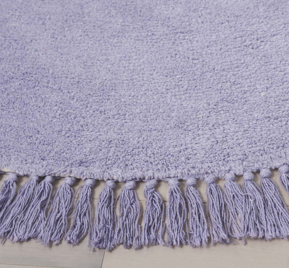 Step into a world of richness and texture with our 3' x 3' round area rug, handcrafted with passion and finesse in the vibrant land of India. This stunning piece, dyed in tranquil shades of lilac, promises to be an instant style upgrade for your living space. With a compact size of 3' and a delicate height of 3/8'', this round-shaped rug is perfect to infuse any nook and corner with warmth and charm. The hand-tufted technique speaks volumes about its exemplary craftsmanship and authenticity. Further sweetening the deal is the fact that it is made of recycled cotton ? an ode to our commitment towards the environment. Bring home this round, lilac sensation and let its Indian charm brighten up your decor!