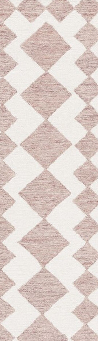 Introducing our Modern 2'-3'' x 9' Hand Tufted Runner Rug in a vibrant shade of Pink and soft Ivory. As plush underfoot as it is eye-catching, this runner rug is designed to create an inviting atmosphere in your home. The rug has been masterfully crafted in India using a luxurious combination of materials, including 60% wool for warmth and durability, 15% jute for its eco-friendly attributes, 15% polyester for resilience and luster, and 10% cotton for a soft touch. The careful Hand Tufted construction ensures a high level of craftsmanship and attention to detail. With a moderate height of 3/8'', this runner rug offers plush comfort without becoming a trip hazard. Its modern style is perfect for those seeking a contemporary update to any hallway or living space. This runner rug is a true example of artful creation that takes you beyond the norm, and all that with an incredible blend of colors: pink and ivory, carefully selected to fit your modern design needs.