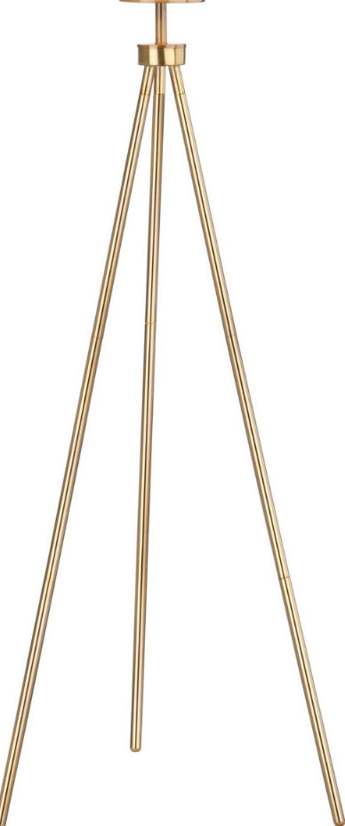 Add depth and dimension to any interior with this contemporary floor lamp. Its sleek tripod legs feature a radiant gold finish that adds opulent minimalist style to the living room or bedroom. Designers love the crisp, clean lines of its off white shade.