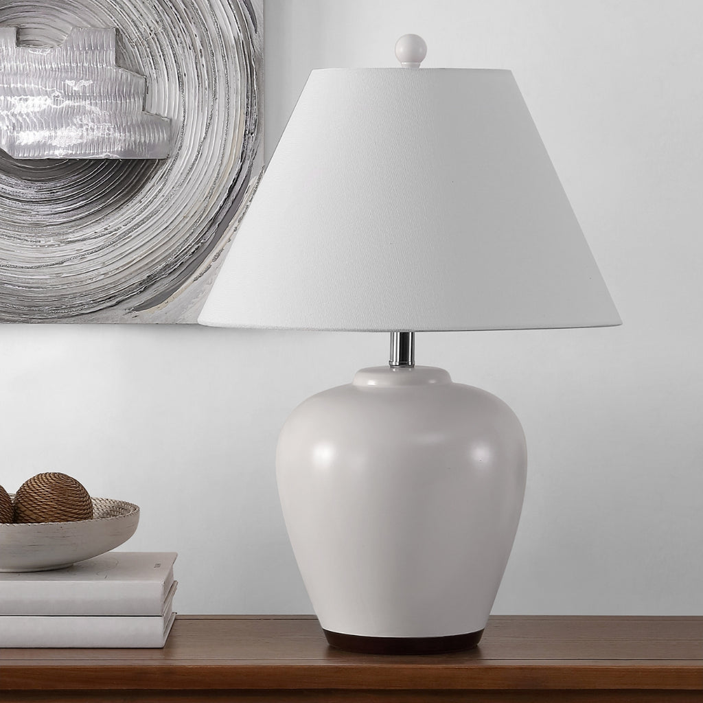 Clean and contemporary, this Etren Table Lamp is sophisticated in its dignified modesty. Etren's classically styled ivory ceramic is given a touch of visual intrigue with an antique brown base, perfectly finished with a crisp empire shade.