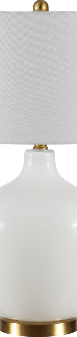 The perfect statement piece for today's decor, this Eugenie Glass Table Lamp boasts eye catching intrigue. Eugenie's substantial gourd silhouette shines in an antique white finish, ensuring it seamlessly accents any existing furnishings.