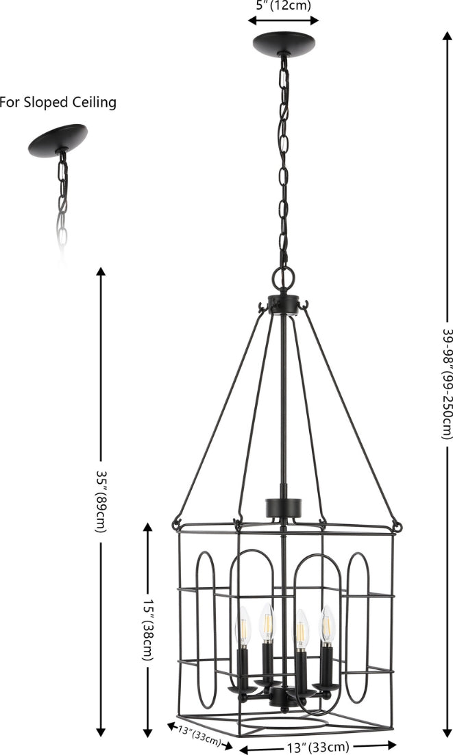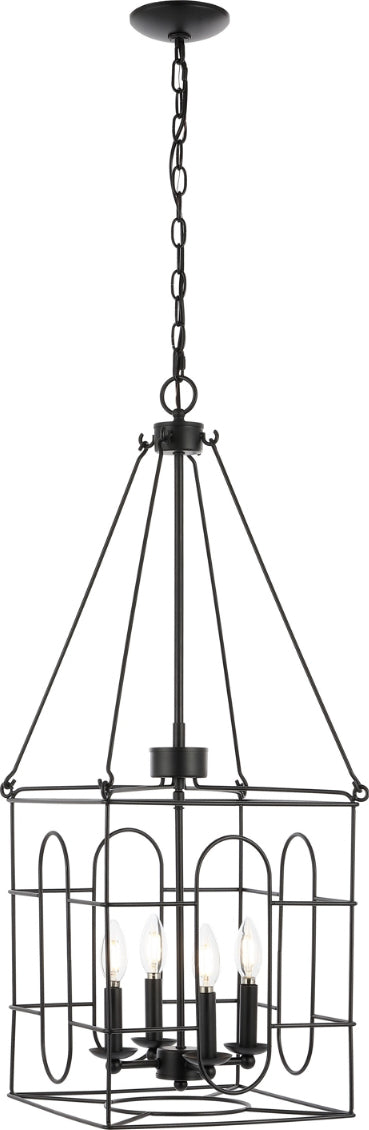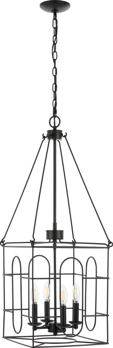 Give a chic and contemporary update to your decor with our charming Flatbush chandelier. The open and airy frame of the chandelier plays with crisp lines and curves to attain a bold geometric presence. Its open cuboid is enriched with stunning decorative details to bring eye-catching drama and interest to any corner. Completed with a black metallic finish, our chandelier creates a chic and stylish focal point in your entryway, dining, living space, or bedroom. It features four candle-style lights to lend an unfettered and radiant glow to any corner.