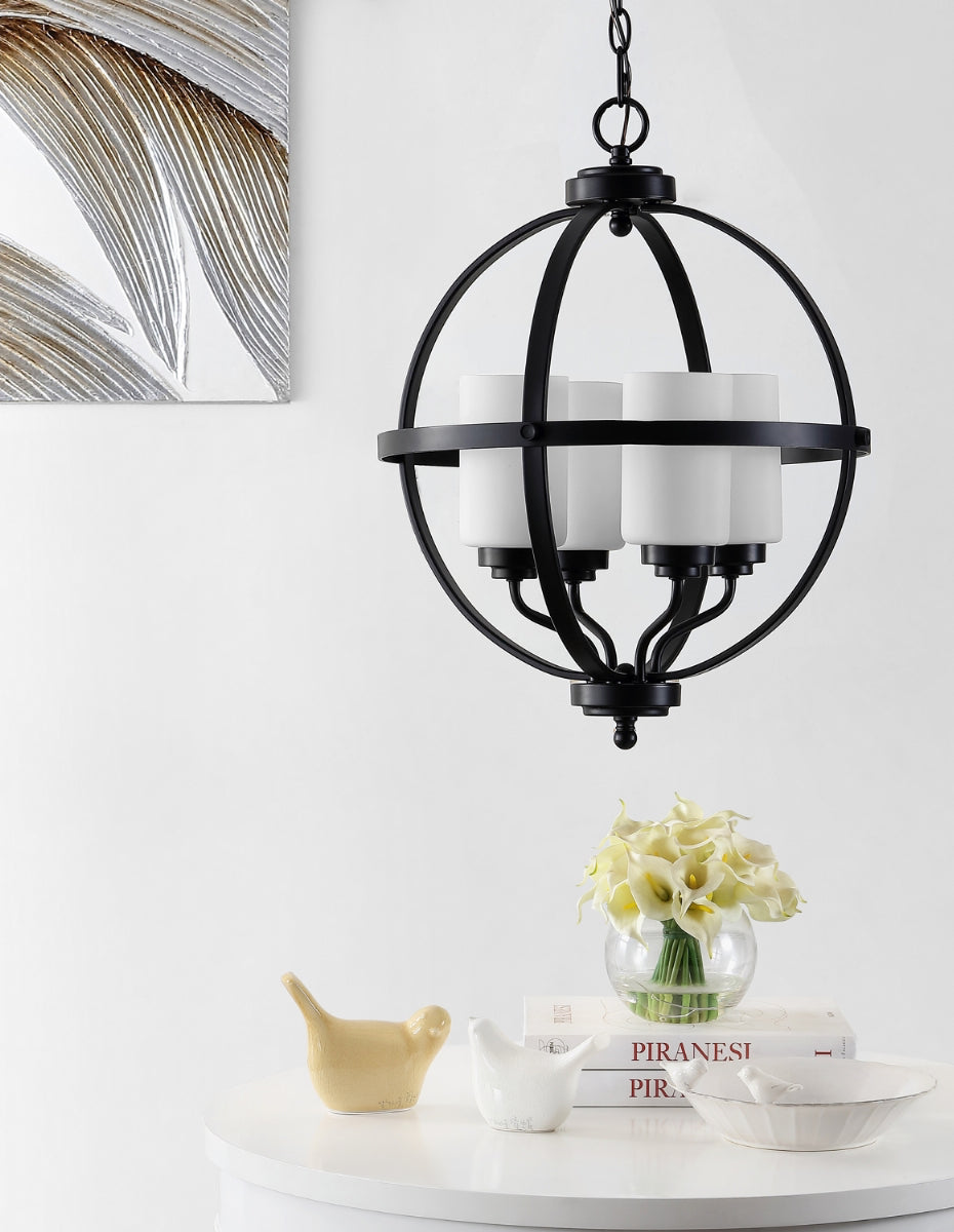 An industrial take on antique elegance, this Forler Pendant is the perfect finishing touch to any room. Forler's open globe silhouette is given a modern touch with a rich black finish, while its four cylinder lights beautifully offset the organically curved details.