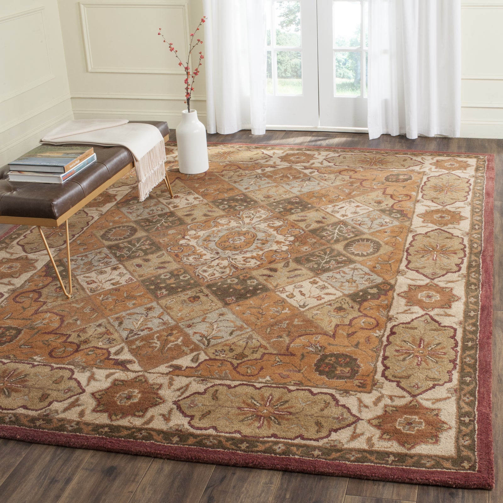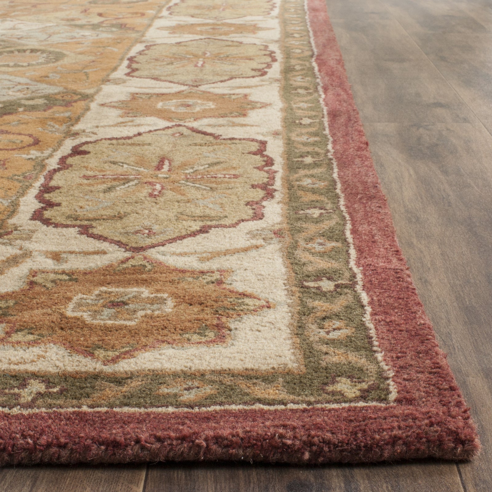 With rich, luscious detailing and a vibrant feel, Safavieh's Heritage collection brings life to any space. Hand-tufted of pure wool with strong cotton backing, these traditionally beautiful rugs can withstand even the most highly traveled areas of your home.. This rug pattern has Cotton Backing.