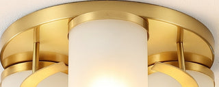 Create a custom couturier look in your decor with this absolutely astonishing Jeffra Flush Mount. At the pinnacle of high fashion glamour, Jeffra's three acid glass shades create an artistic sense of depth and decadence in any room, perfectly balanced by the shimmer of its brass gold base.