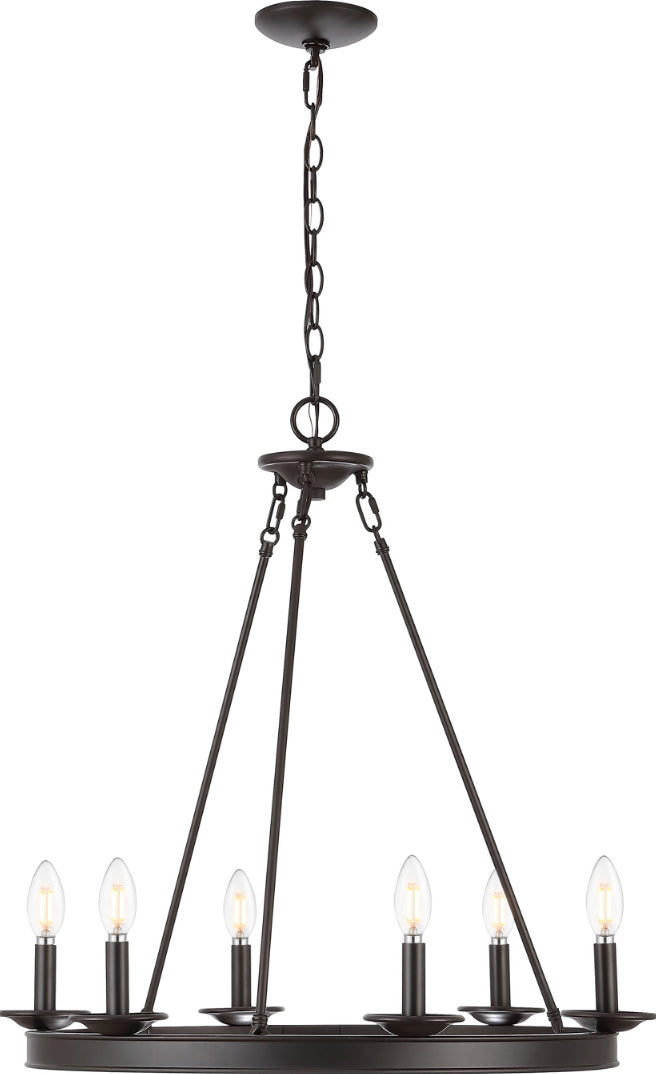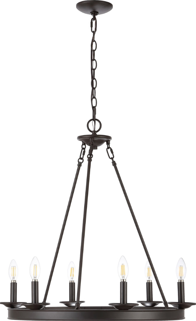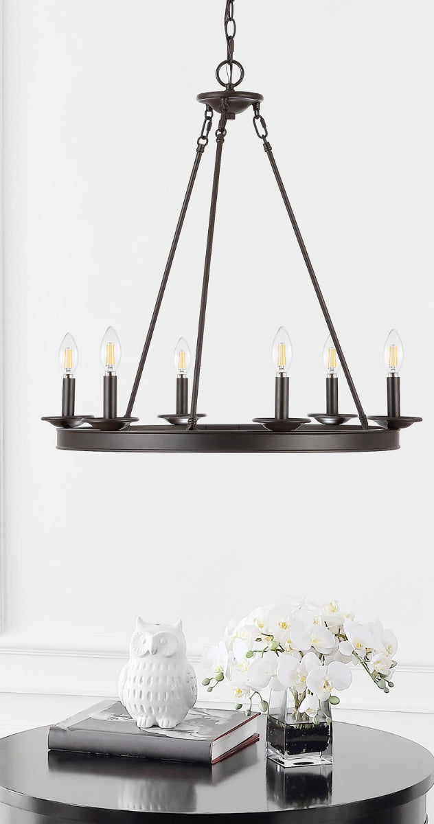 Elegant and understated, this timeless 6 light metal chandelier adds character to any living room or dining room. Designed with six gorgeous lights to create a subtle, ambient glow, its deluxe oil rubbed bronze finish blends seamlessly into any decor.