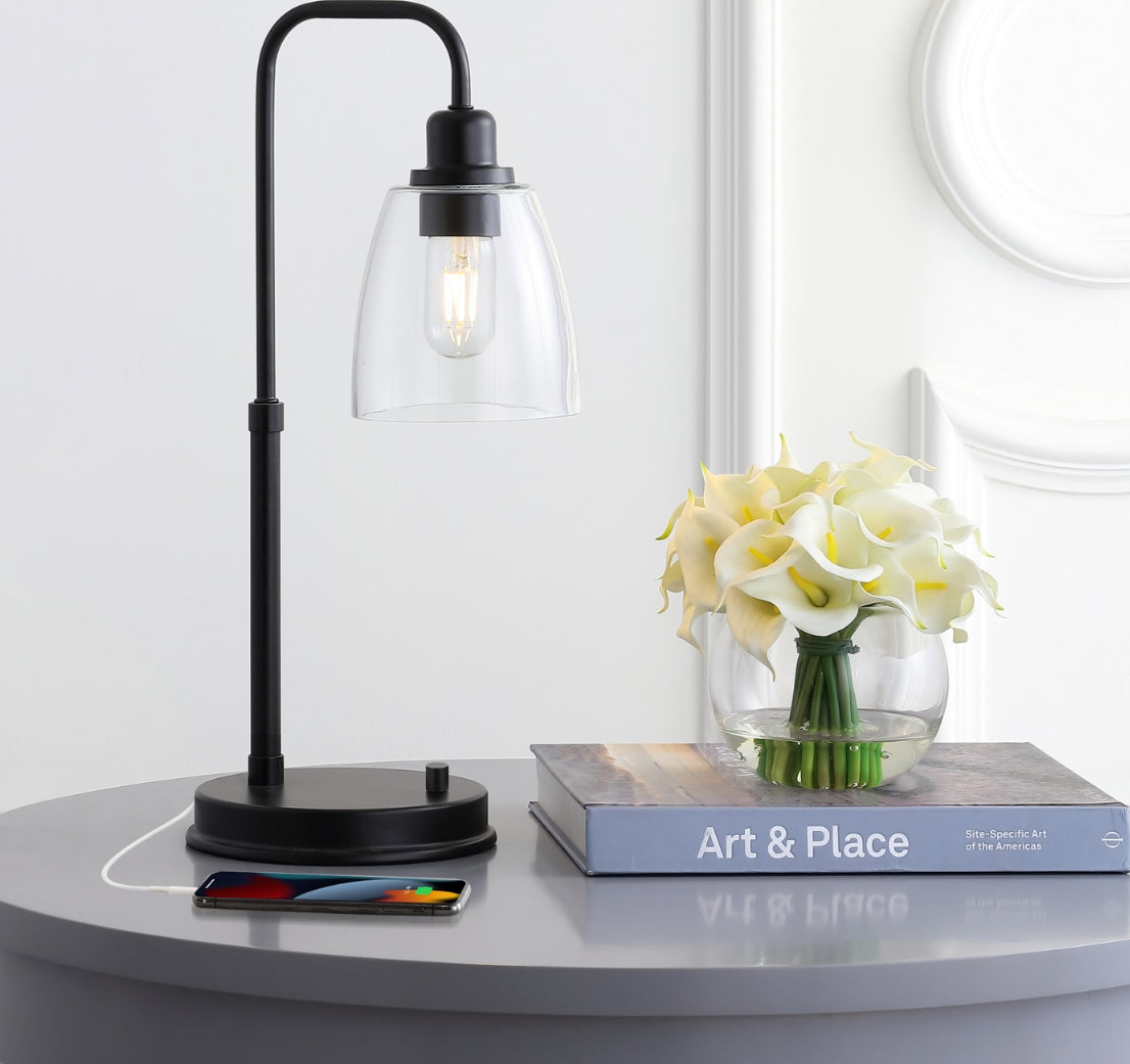 An updated take on a Victorian streetlamp, the Kashton Task Table Lamp brings vintage flair to the workspace. A clear shade casts ample light while showcasing a retro bulb, with a black iron body creating the ideal form for its suggestive look.