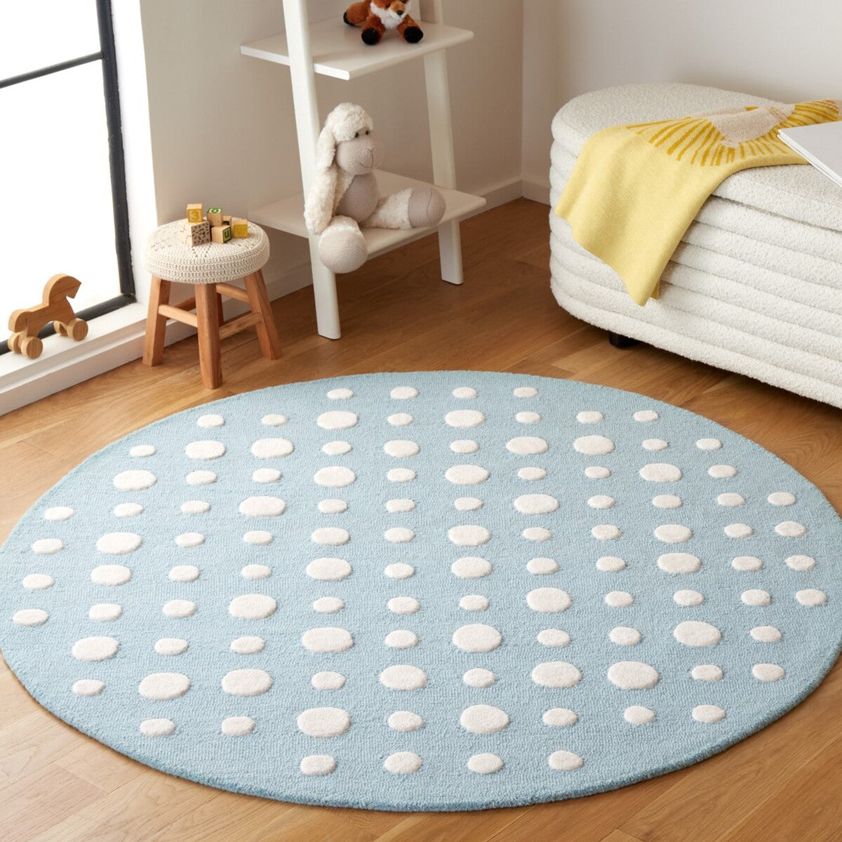 Elevate your home with the playful elegance of our Hand Tufted Wool-Cotton Runner Rug in a vivacious BLUE with soothing IVORY dots. Expertly crafted in INDIA, this high-quality rug measuring 2 feet 3 inches by 8 feet is designed to add a touch of whimsy to your interior. The runner's Kids style pattern features a delightful array of polka dots that bring an air of joy and sophistication to any hallway or narrow space.