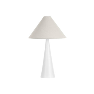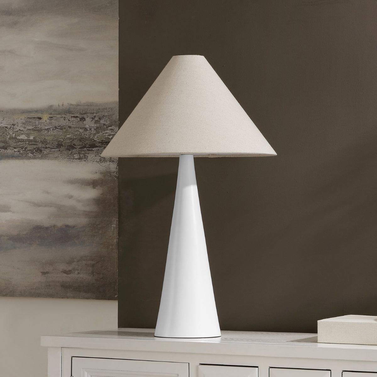 Illuminate your space with the elegant and stylish Kimora Table Lamp. This beautiful lighting piece is designed with a sleek, white resin body that seamlessly complements any decor. It features an oatmeal-colored fabric shade that softly diffuses light, creating a warm and inviting atmosphere in your home or office.