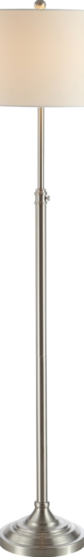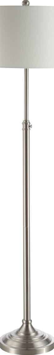 Flaunting the simple elegance of minimalist style, the Leeland Floor Lamp showcases understated brilliance in its slender silhouette and brush nickel finish. A complementary 100% white cotton shade brings a touch of traditional warmth, allowing Leeland to seamlessly harmonize with any decor.
