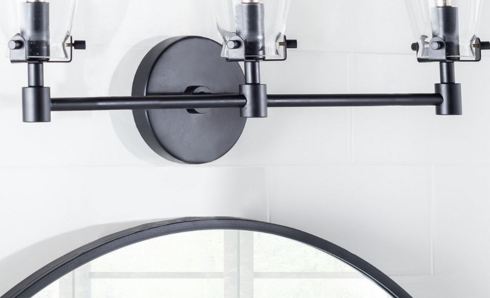 This Lonsen Vanity Sconce is the picture perfect way to illuminate your reflection with style and chic. Lonsen's three conic glass shades cast a soft glow, held aloft by a sleek matte black body designed to effortlessly accent any interior.