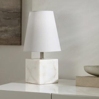 Introducing the elegant Lou Table Lamp, a sophisticated addition to any space that seeks to enhance its ambiance with a touch of class. The lamp boasts a striking white fabric shade paired beautifully with a sturdy marble base finished in a sleek nickel color. The blend of materials strikes a perfect balance between modern style and classic charm.