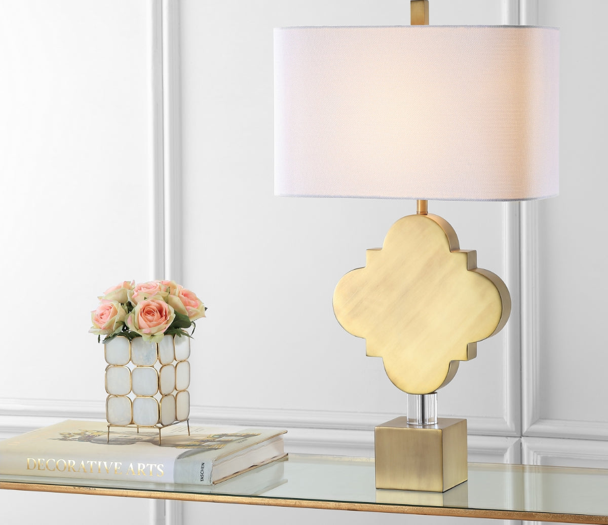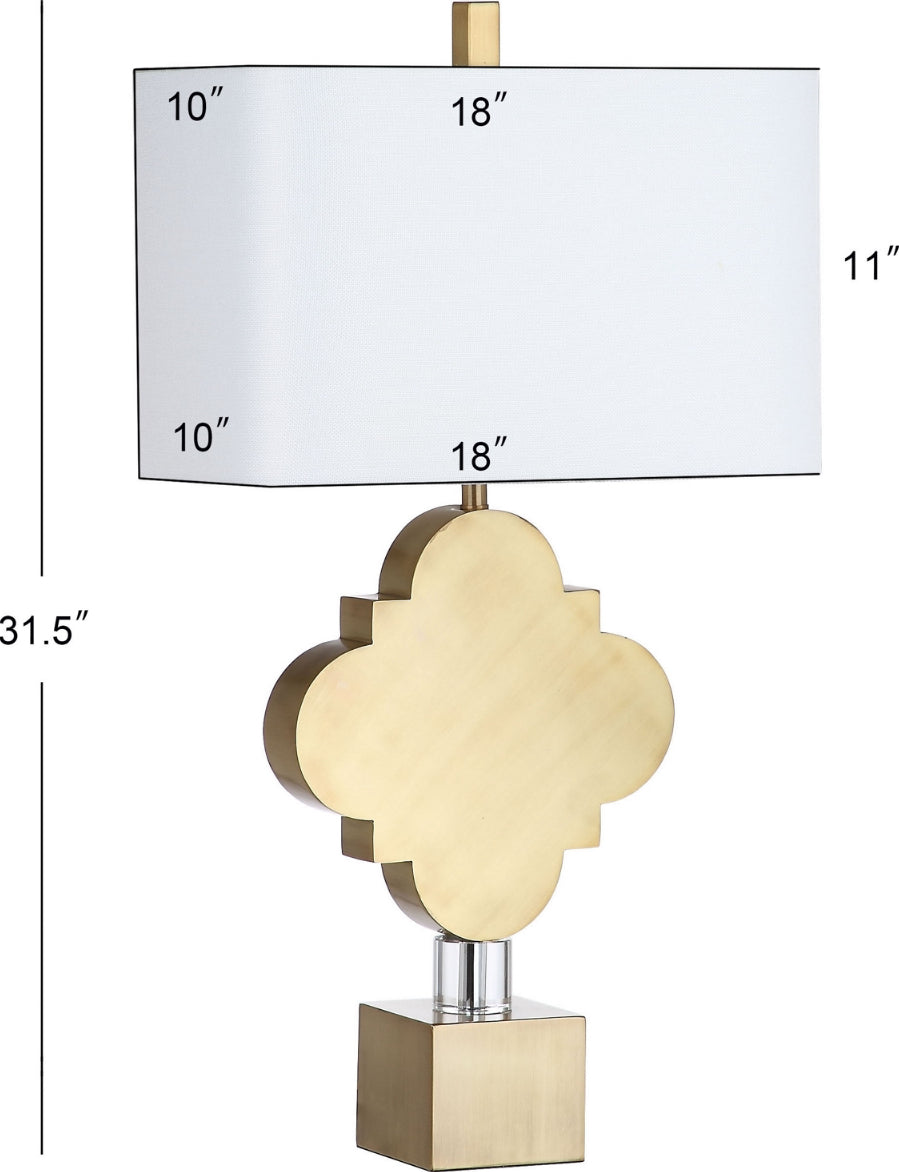 This modern table lamp was designed for the inspired urban interior. Imbued with the artistic presence of modern sculpture, the stunning gold finish on the quatrefoil body is perfectly paired with sparkling crystal detail to create a bold focal point.